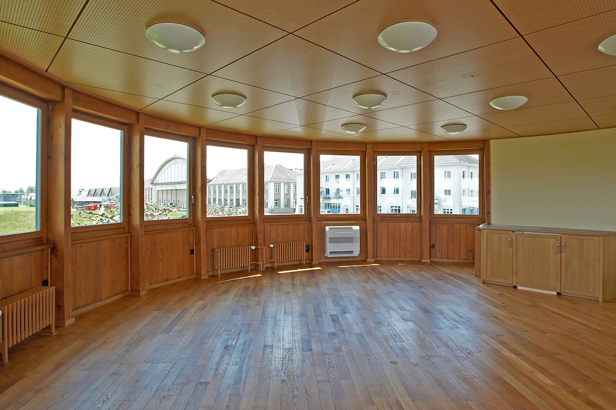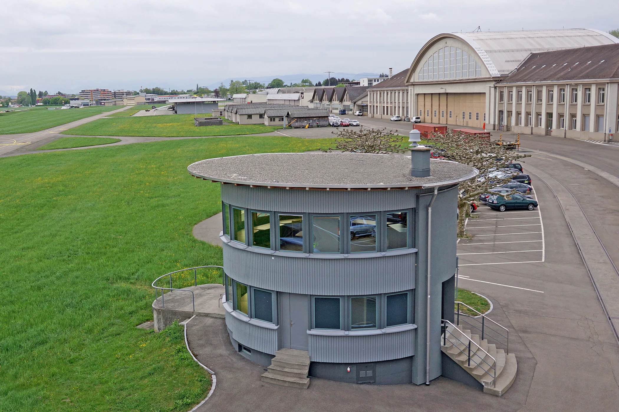 Der kleine Solitärbau des Kontrollturms gilt aufgrund seiner markanten Erscheinung und seiner prominenten Lage an der Haupteingangsachse heute als Wahrzeichen des Flugplatzes Dübendorf. Bericht