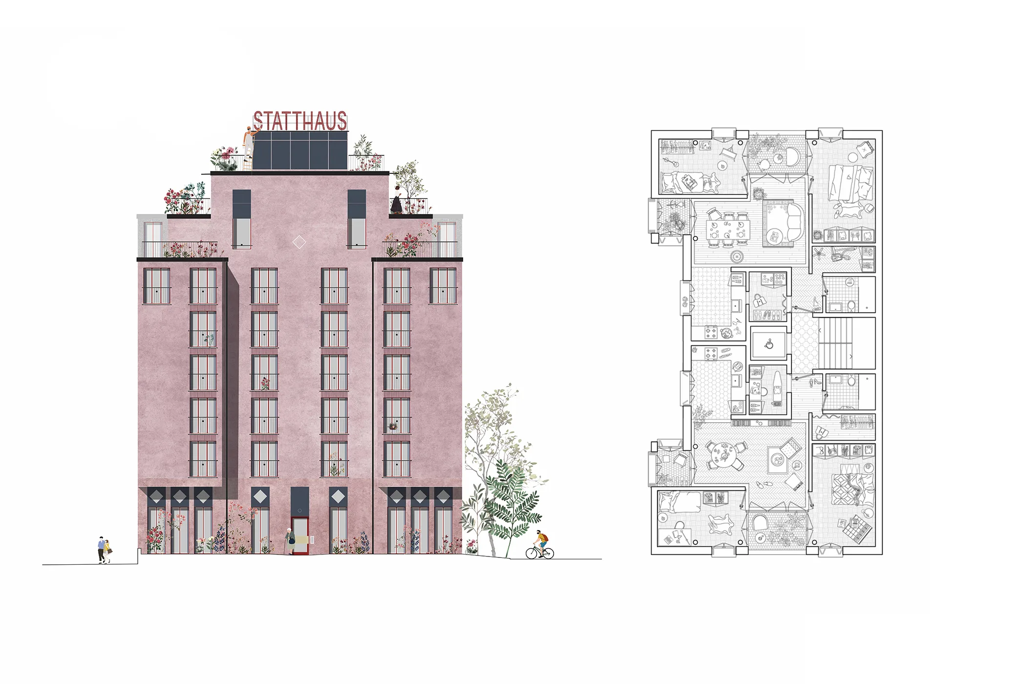 Gegenüber dem Hallenstadion entsteht ein Neubau, der zur Verdichtung des sich rasant wandelnden Oerlikons beiträgt. Es handelt sich um das einzige Wohnhaus entlang einer Strasse, die bisher fast ausschliesslich von Gewerbe- und Bürogebäuden geprägt war. Das Gebäude schafft eine unverwechselbare Identität im Quartier und etabliert eine prägnante Bebauungsstruktur innerhalb eines neu entstehenden Blockrandensembles. Es fügt sich einerseits in den städtebaulichen Kontext ein und behauptet sich andererseits mit seiner markanten Form und Präsenz. Das Gebäude markiert selbstbewusst die Ecke zur Thurgauerstrasse und richtet seine Giebelfassade direkt zur Strasse. Im Erdgeschoss öffnet sich ein Sockel mit einer grosszügigen Raumhöhe. In den Obergeschossen entstehen kompakte 3.5-Zimmer-Wohnungen, jeweils ausgestattet mit Loggien und Wintergärten, die den Grundrissen eine spürbare Grosszügigkeit und viel Licht verleihen. Besondere Aufmerksamkeit gilt der Fassade. Sichtbeton in erdigen Sienatönen verleiht dem Haus einen zeitlosen Ausdruck. Französische Fenster mit Läden, fein profilierten Stürzen und sechs Terrassen in den oberen Geschossen rhythmisieren das gestaffelte Volumen. Die Open-House-Besichtigung findet während der Bauphase statt, eine besondere Gelegenheit, das Projekt vor seiner Fertigstellung zu entdecken und seinen Einfluss im sich wandelnden Quartier zu erleben.
