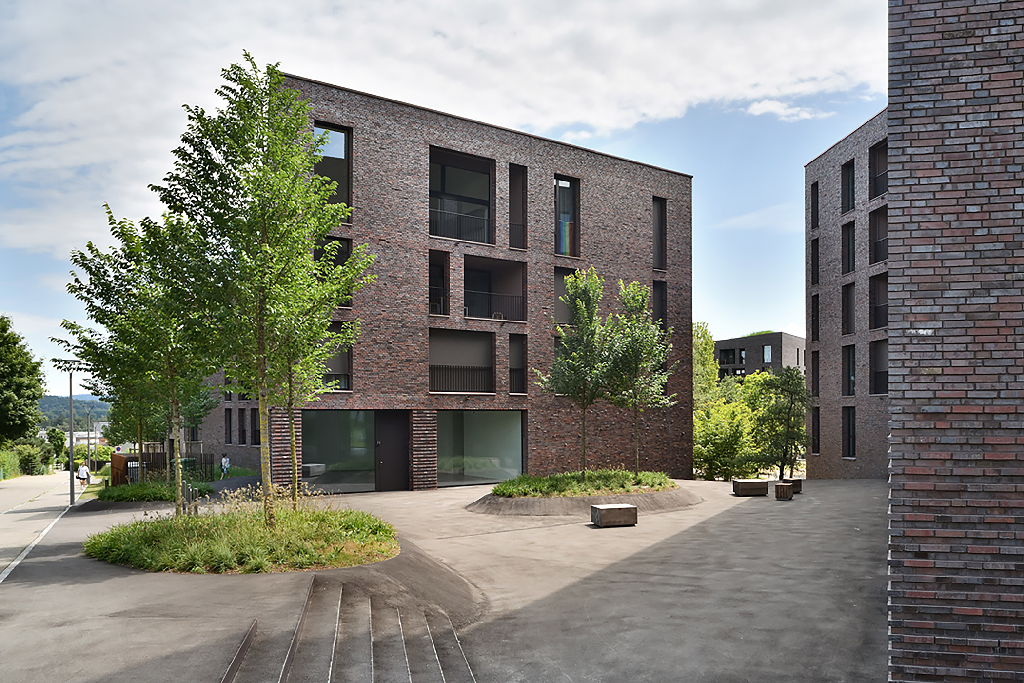 Die Baukörper erhalten durch ihre Fassadengestaltung spannende Zwischenräume. Über 650’000 Klinkersteine, gebrannt in einem der letzten traditionellen Ringöfen, verankern das Projekt im historischen Kontext des einstigen Werkplatzes. Jeder Stein ist ein Unikat und gibt den Gebäuden eine lebendige Ausstrahlung.