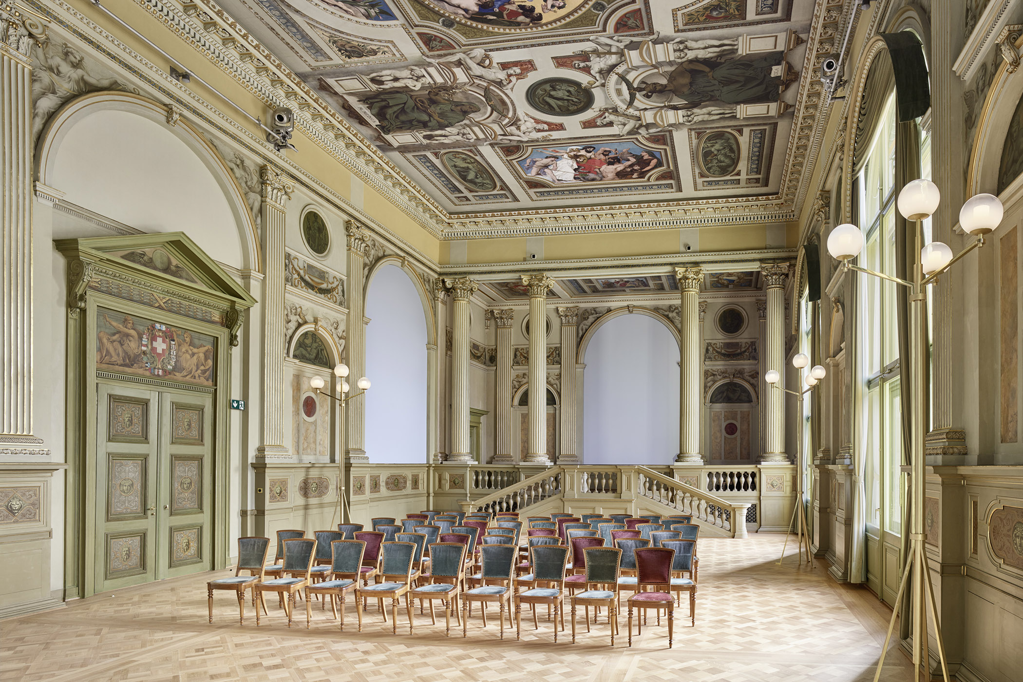 Gottfried Semper ist der Architekt von weltberühmten Gebäuden wie der Wiener Hofburg und der Dresdner Oper. Er entwarf aber auch das Hauptgebäude des Eidgenössischen Polytechnikums, der heutigen ETH Zürich. Die Semperaula wurde von 1860 bis 1870 gebaut. Nach drei Jahren der Restaurierung erstrahlt sie jetzt in neuem Glanz. Die Semperaula gilt als einziger weitgehend original erhaltener, repräsentativer Innenraum Gottfried Sempers und ist reichhaltig ausgestattet, voller Details, mit Stuckdekorationen und goldenen Konturen sowie in Paris hergestellten Leinwandbildern. Die Vorbilder der verwendeten architektonischen Formen reichen von der römischen Antike bis zur italienischen Renaissance. An der Decke findet sich mit einer Fläche von 180 Quadratmetern eines der grössten Gemälde aus der Mitte des 19. Jahrhunderts. Erleben Sie ein spektakuläres spätklassizistische Juwel voller Symbolik!