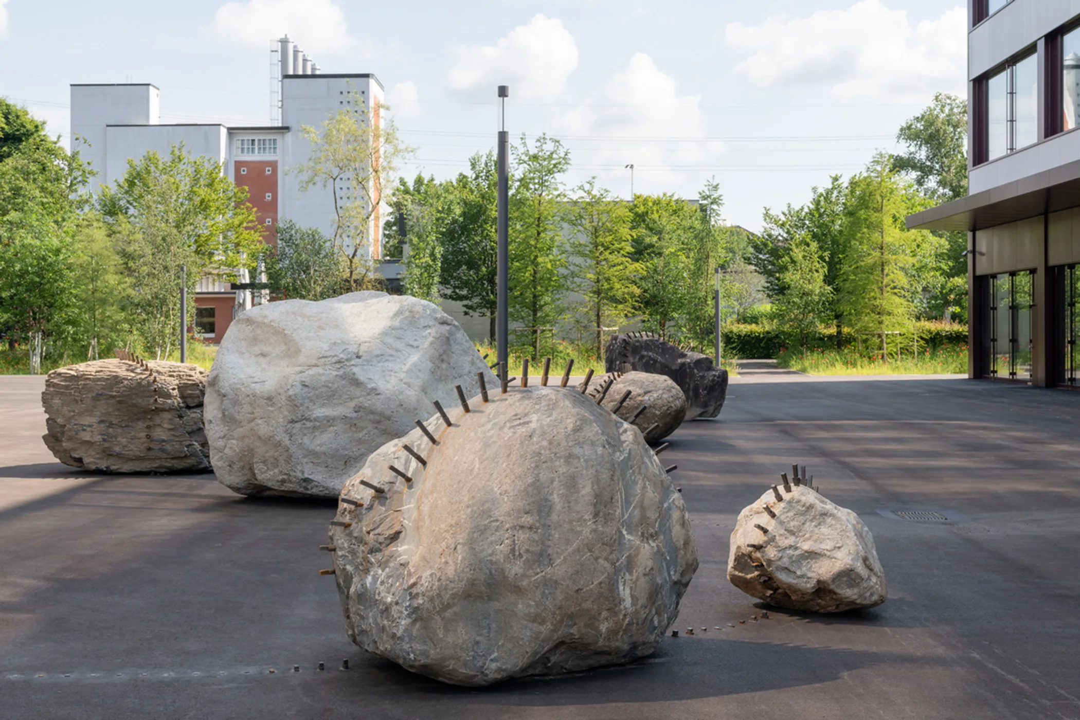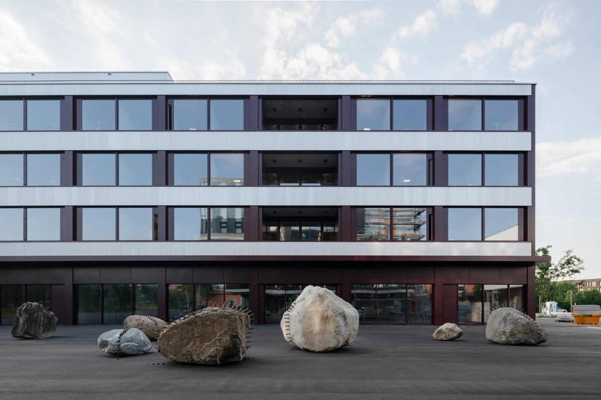 Die Erweiterung im Osten des Forschungscampus‘ von Empa und Eawag, vollendet 2024, folgt dem städtebaulichen Masterplan, der zuvor von BASK (Architektur & Städtebau) entwickelt wurde. SAM Architekten entwarfen die drei Neubauten, die diesen Erweiterungsbereich massgebend prägen. Ziel der Erweiterung ist ein Campus, der Austausch und interdisziplinäre Zusammenarbeit fördert. Zentrales Element bildet das grüne Band entlang des Chriesbachs, das bestehende Bauten wie das Forum Chriesbach und das NEST mit den Neubauten verbindet. Ein Laborgebäude schliesst den Hauptplatz nach Osten ab, gegenüber ergänzt ein multifunktionales Haus das Ensemble. Entlang der Überlandstrasse markiert ein Parkhaus in Holz-Beton-Hybridbauweise den Eingang zum Areal und bietet mit seinen Loggien auch soziale Begegnungsräume. Alle Gebäude sind nach Minergie-P-Eco zertifiziert. Zudem wurde erstmals BIM umfassend eingesetzt, um Planung, Nachhaltigkeit und Betrieb effizient zu verzahnen.