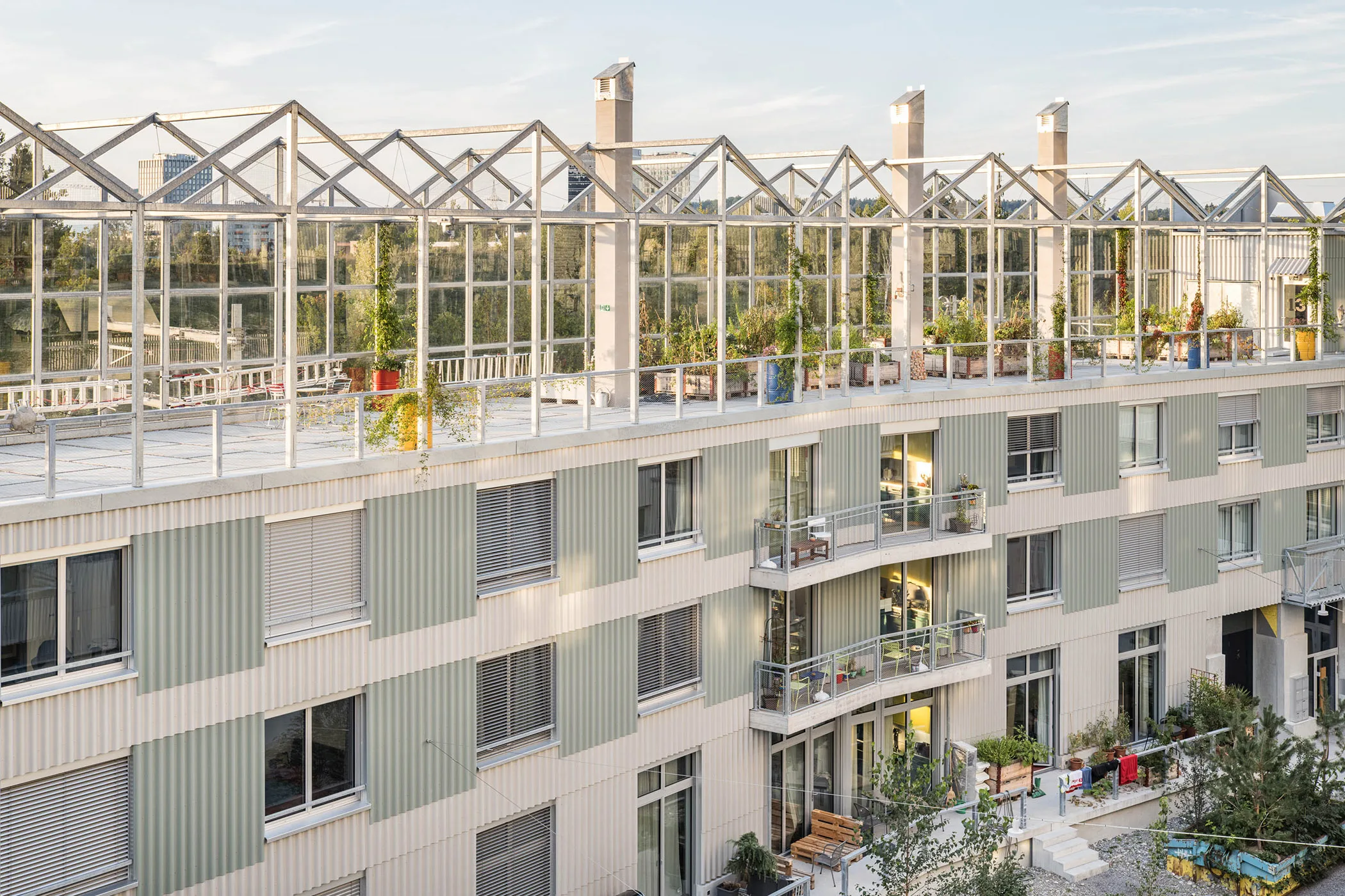 Das Wohnbauprojekt zweier Eigentümerinnen, mit ergänzenden gemeinschaftlichen Nutzungen, folgt der Idee vom Wohnen in der ehemaligen Gärtnerei. Das Herzstück bildet ein gemeinschaftlicher Innenhof. Dieser wird durch drei Gebäudeteile geformt, welche sich mit dem Hauptbau, einem abgewinkelten Flügelbau sowie dem Kopfbau in die Umgebung einfügt.