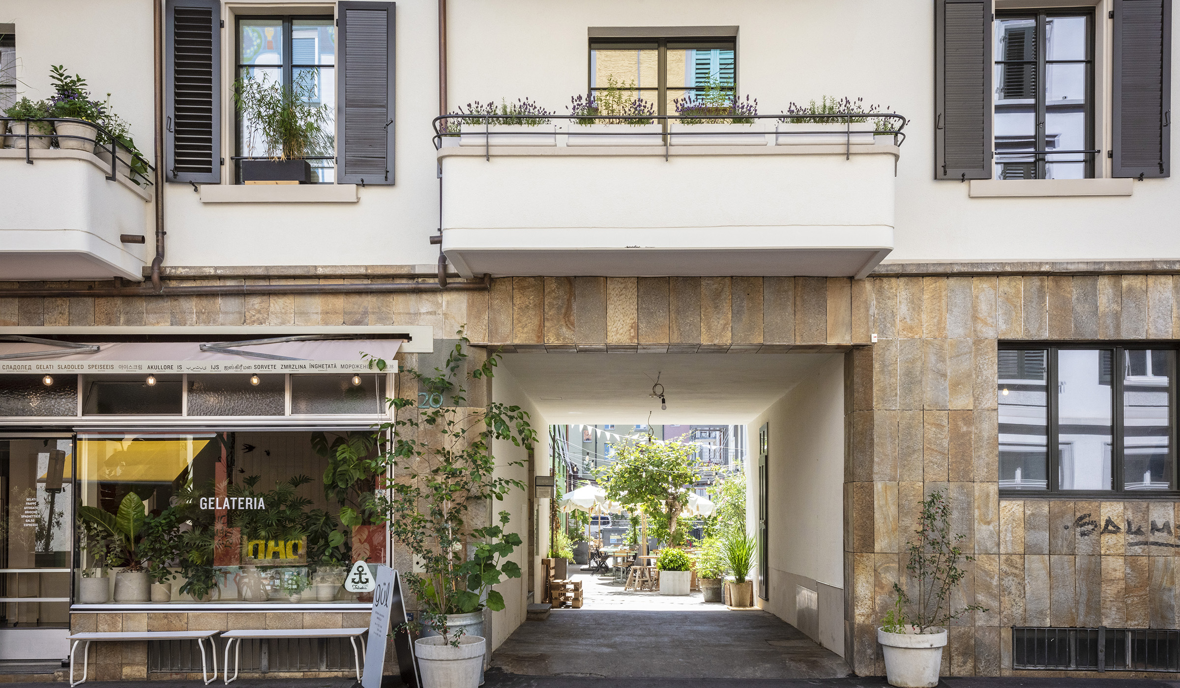 Die weiterentwickelte Wohnform der ehemaligen Mietskaserne schafft zusammen mit der Erdgeschosszone den Transfer ins heute und macht den Innenhof zum belebten Treffpunkt im Quartier. Das Hofgebäude bildet den Kern des Ensembles und kann während Open House Zürich besichtigt werden.