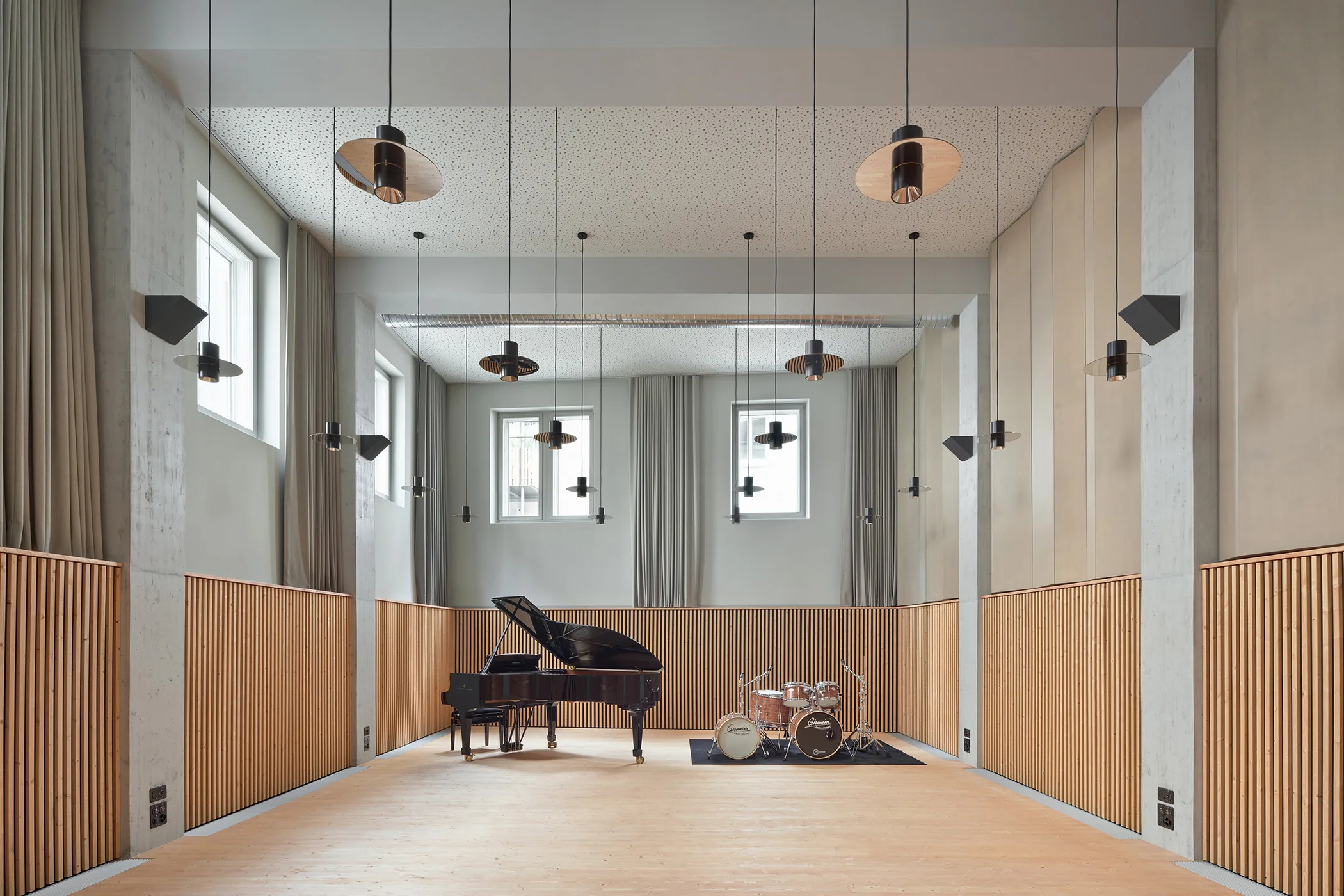 2024 wurde für das Zurich Jazz Orchestra Proberäume eingebaut. Im Gegensatz zum Auftritt auf exponierten Bühnen findet das Proben in einer eigentlichen Terrainmulde statt. Das Besondere am Proben ist das Ausprobieren, das eben auch Scheitern beinhaltet. Deshalb wurden Räume entworfen, in welchen sich das Werkstatthafte mit dem Gefühl von Geborgenheit zu verbinden scheint.