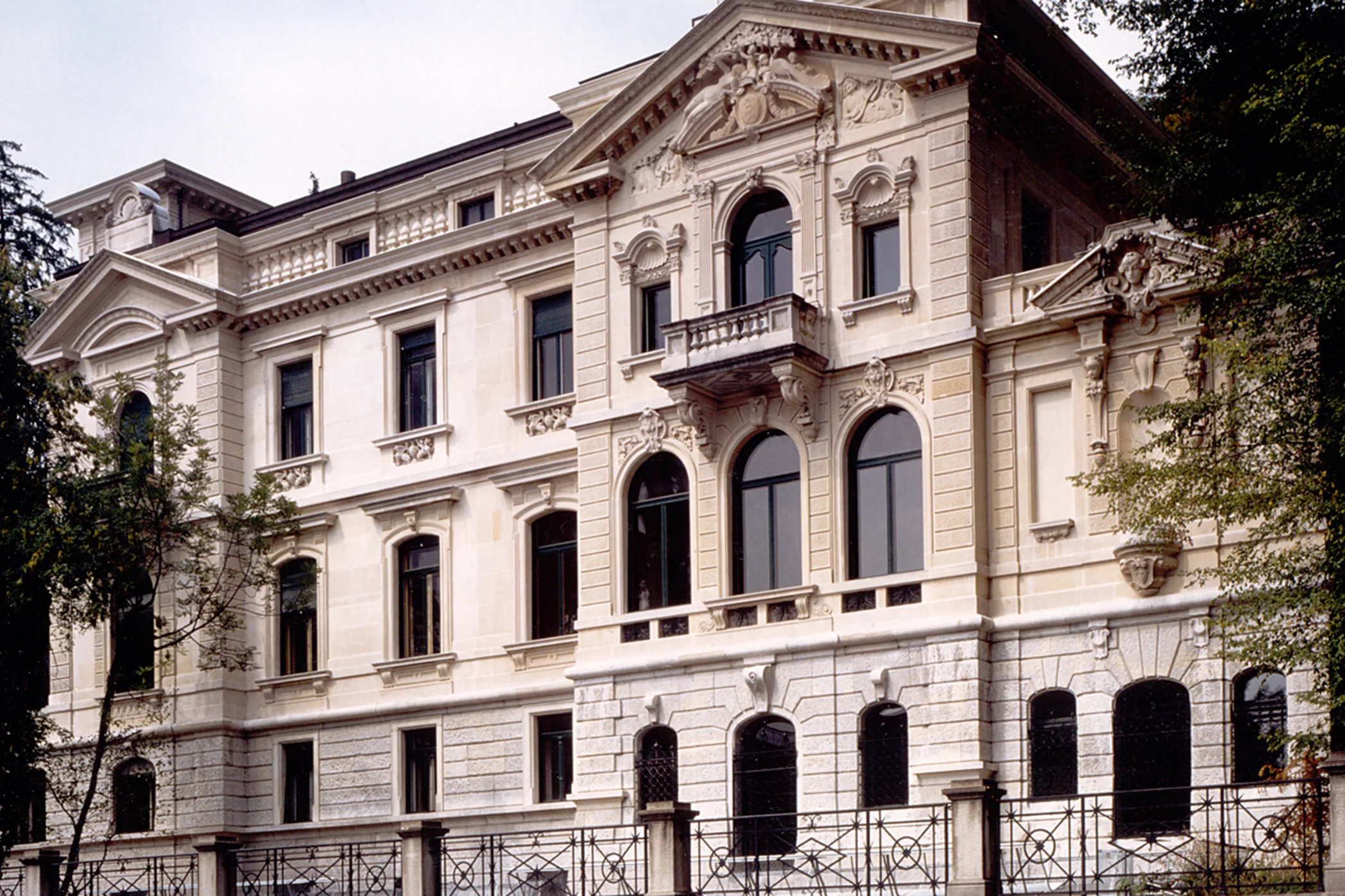 Als herrschaftliche Stadtvilla 1898 von Architekt Kühn für eine Fabrikantenfamilie erbaut, wurde die Villa dem Schönen von Chiodera & Tschudi um grosszügige Säle für die Bilder- und Skulpturensammlung erweitert.