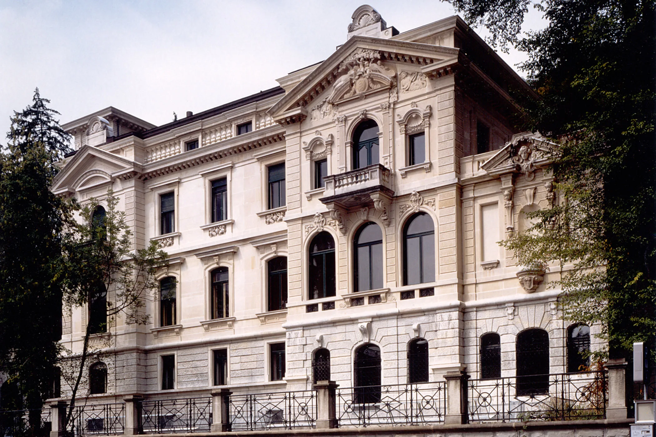 Als herrschaftliche Stadtvilla 1898 von Architekt Kühn für eine Fabrikantenfamilie erbaut, wurde die Villa dem Schönen von Chiodera & Tschudi um grosszügige Säle für die Bilder- und Skulpturensammlung erweitert.