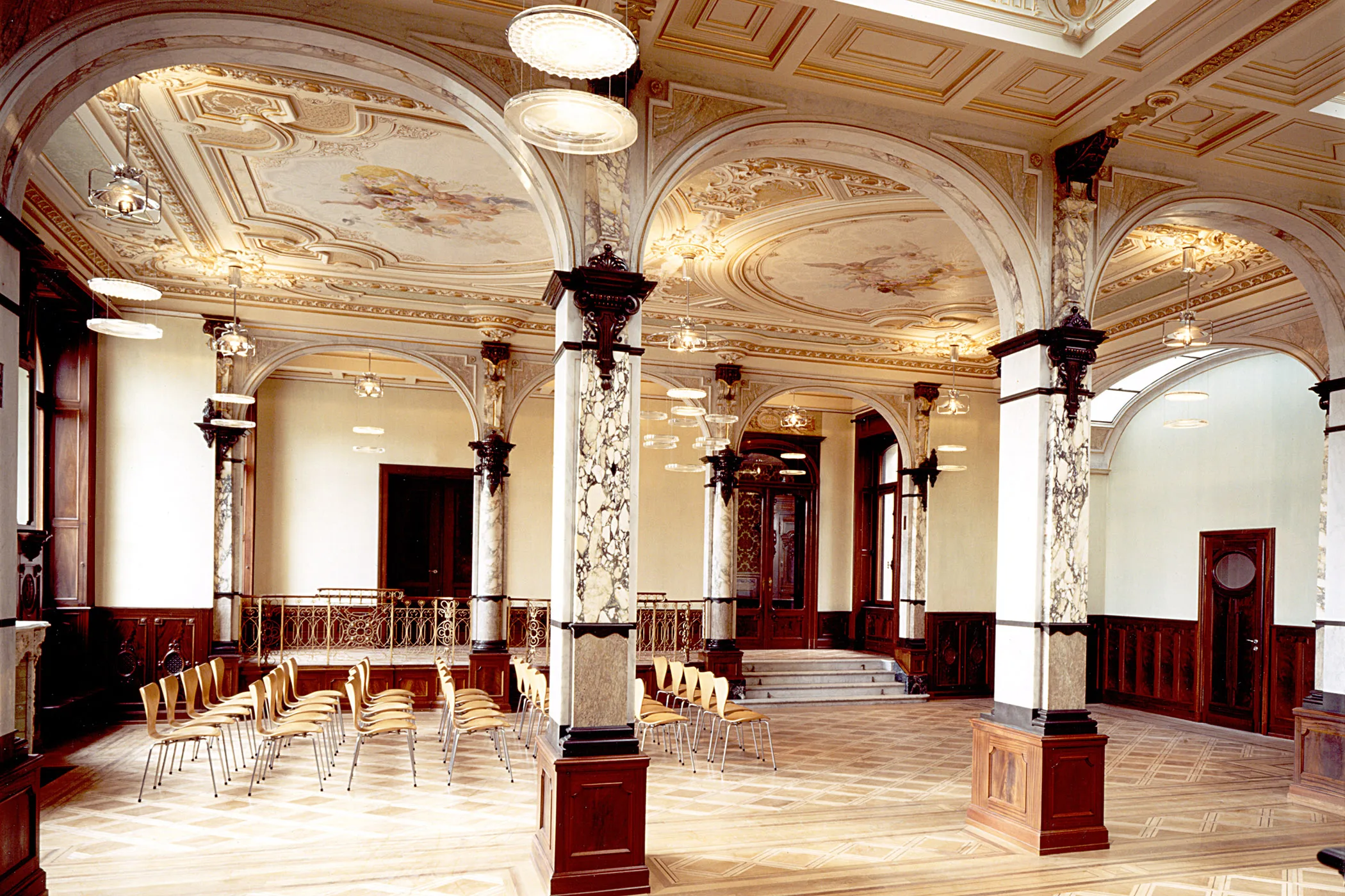 Der Umbau und die Gesamtrenovation stand unter der Leitung der Architektin Tilla Theus. Mit kleinen, präzisen Eingriffen wurden aus den im Historismus reich dekorierten Wohnräumen Schulzimmer für die allgemeinen Schulfächer. Der restaurierte, reich bemalte Festsaal dient als multifunktionale Aula, der Skulpturensaal im Untergeschoss als Raum für plastisches Gestalten.