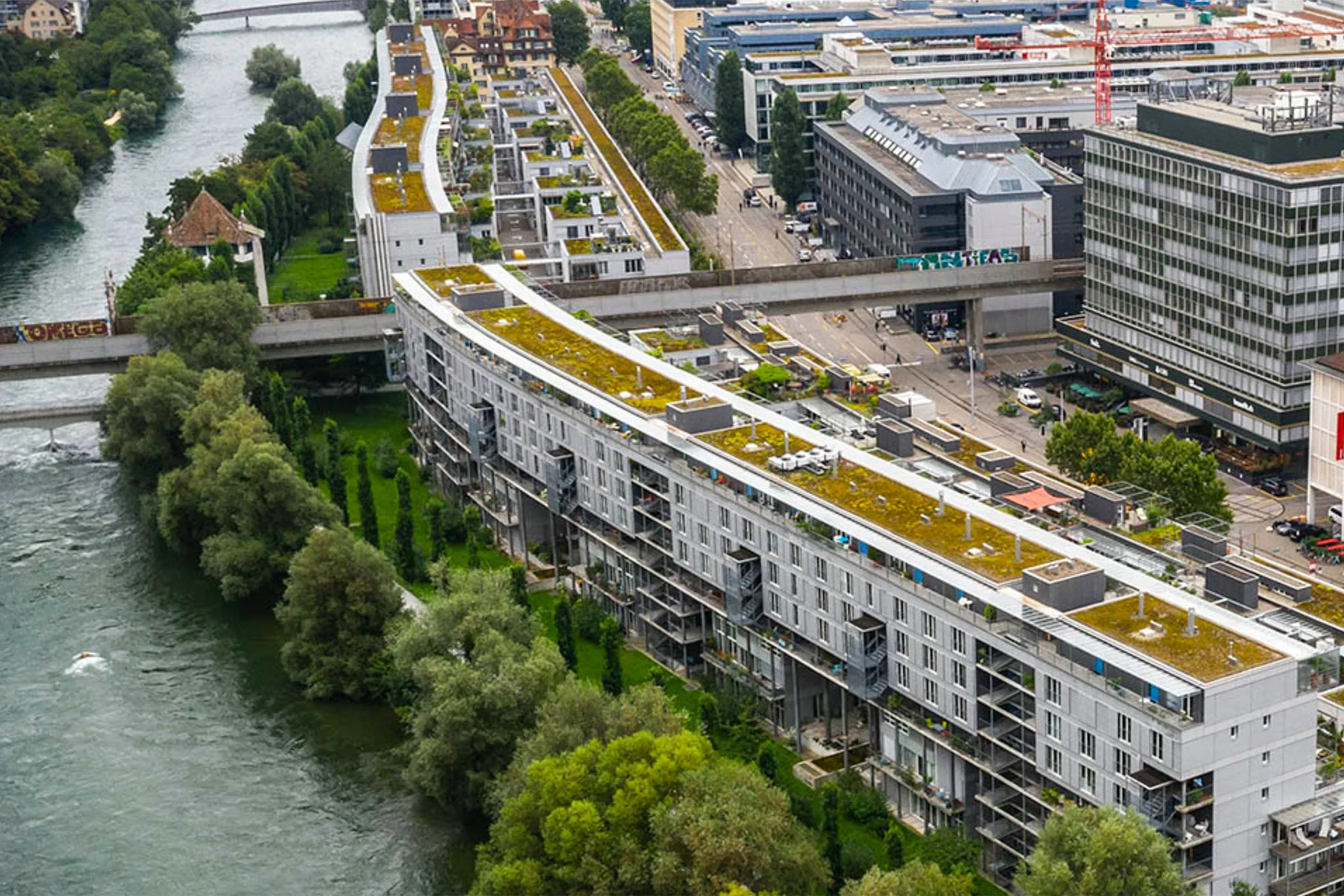 Die Neuüberbauung „Limmatwest“ bildet einen Übergang zwischen einem Industrie- und Dienstleistungsquartier und einer in lockerer Einzelbauweise geprägten Wohngegend. Die lineare, leicht geschwungene Flussfassade gibt dem unter Schutz gestellten HARDTURM aus dem 13. Jahrhundert den notwendigen Freiraum. Ein viergeschossiger durchgehender Baukörper mit Läden und Büros schützt die an der Limmat liegenden Wohnungen vor Emissionen der Hardturmstrasse. Die sieben lärmgeschützten und gut besonnten Erschließungs- und Gartenhöfe öffnen sich über dreigeschossige «Flussfenster» gegen den attraktiven Limmatraum. Die arealinterne Wohngasse dient auch als Anlieferung der Gewerberäume im Erdgeschoss. Der Grossteil der 314 Wohnungen liegt im siebengeschossigen Baukörper direkt an der Limmat. Weiters sind ein Kindergarten, ein Hort und ein Restaurant untergebracht.