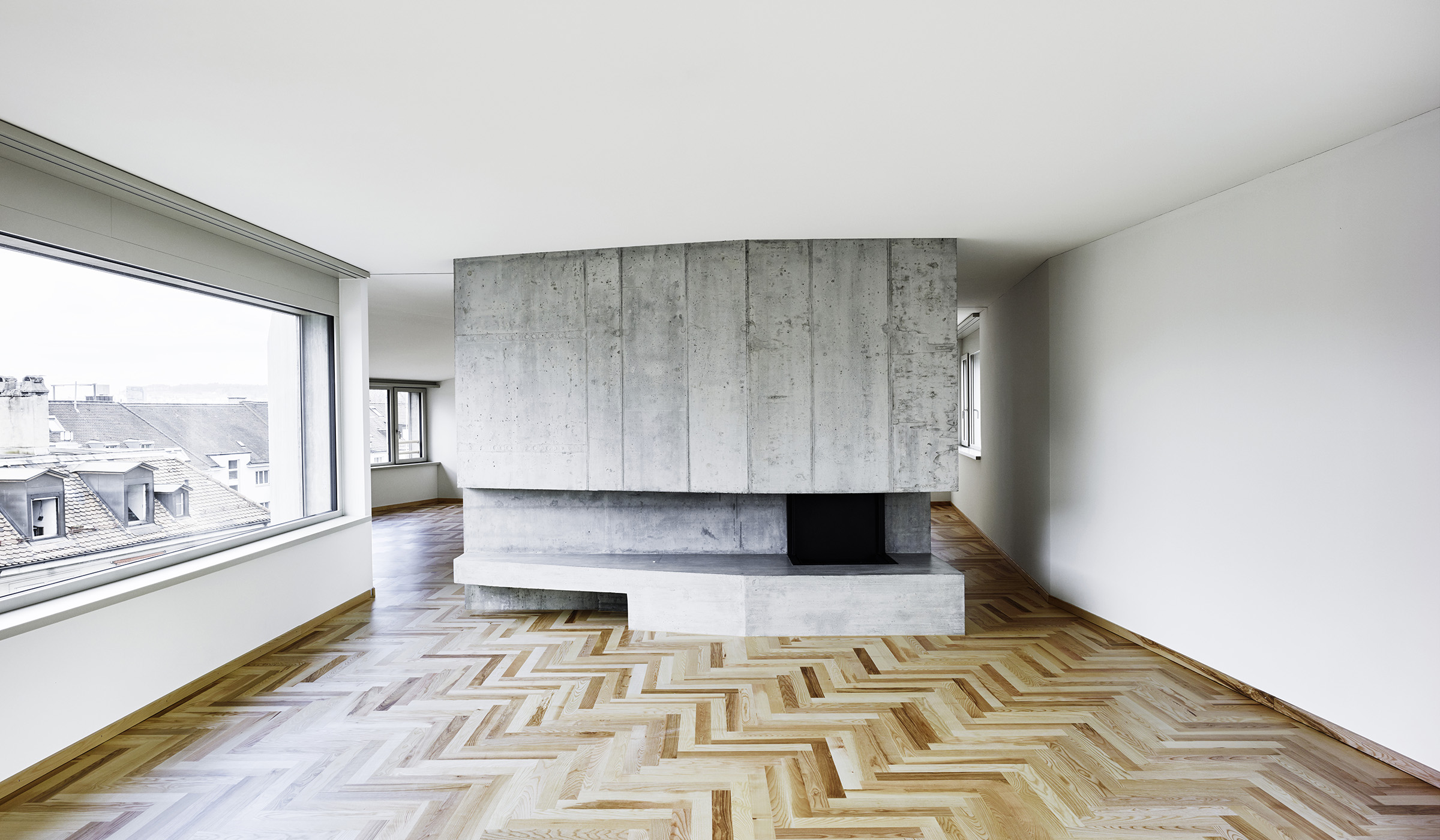 In dem leicht bewegten Gebäudevolumen sind vielseitig orientierte Wohnungen um die mittig angelegte Erschliessung, an der engsten Stelle des Gebäudes. Das Ziel des Projektes lag vor allem darin, preiswerten Wohnraum mit hoher Wohnqualität für sieben verschiedene Parteien zu schaffen. So verfügt der Neubau hauptsächlich über die Topologie der Atelierwohnung. Ihre freien Grundrisse zeichnen sich durch ein hohes Mass an Flexibilität aus. Grundsätzlich wird damit ein eigenständiger, urbaner architektonischer Ausdruck angestrebt, der sich insgesamt gut in die Umgebung integrieren soll.