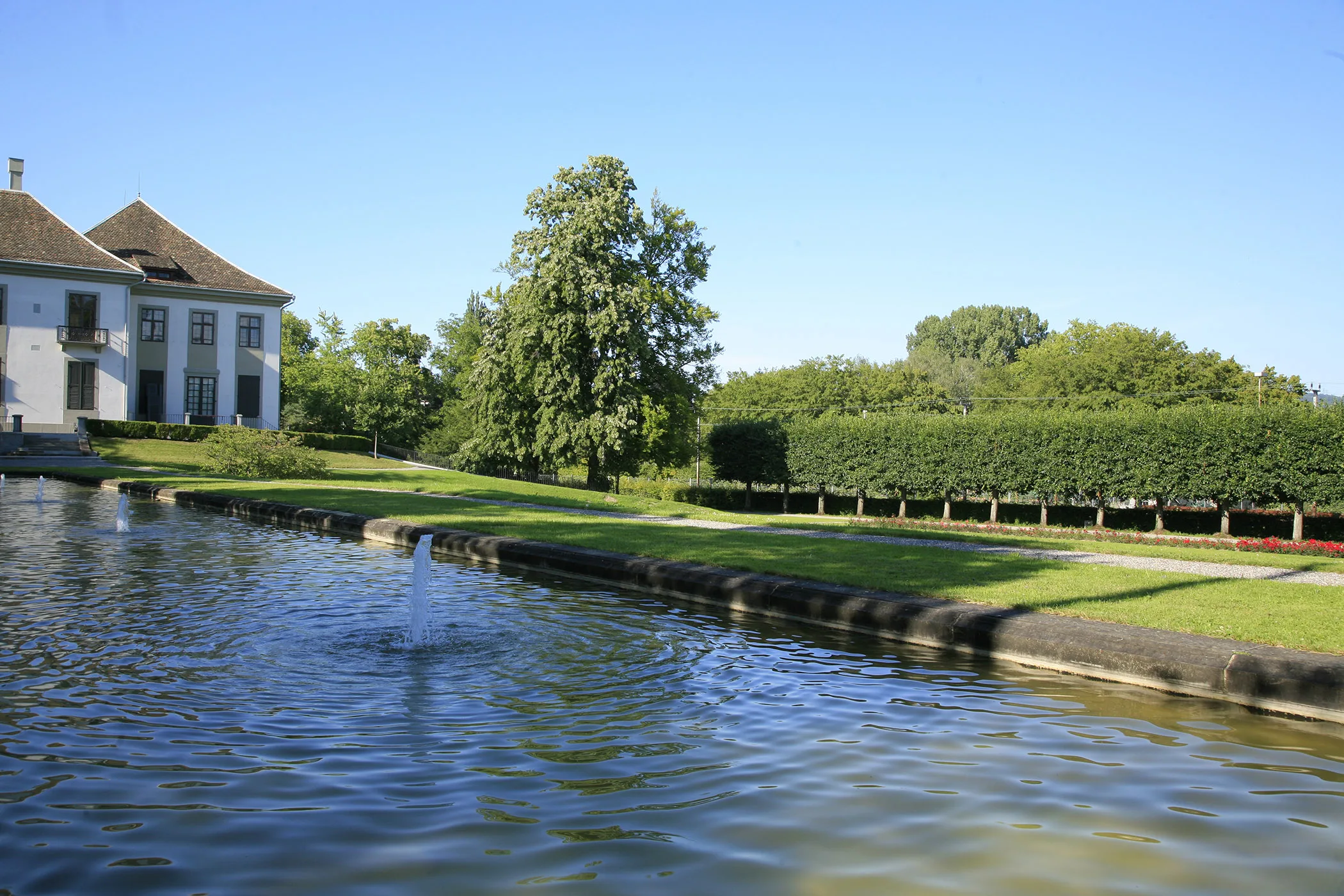 Der Garten beeindruckt durch das spannungsvolle Nebeneinander verschiedener Stilrichtungen: An den aus dem späten 18. Jahrhundert stammenden, von der italienischen Renaissance inspirierten symmetrischen Aufgang vor der Hauptfassade stösst die langgestreckte, schnörkellose Geländemodellierung des frühen 20. Jahrhunderts. Die Parkanlage vermittelt angenehme Grosszügigkeit und Ruhe.