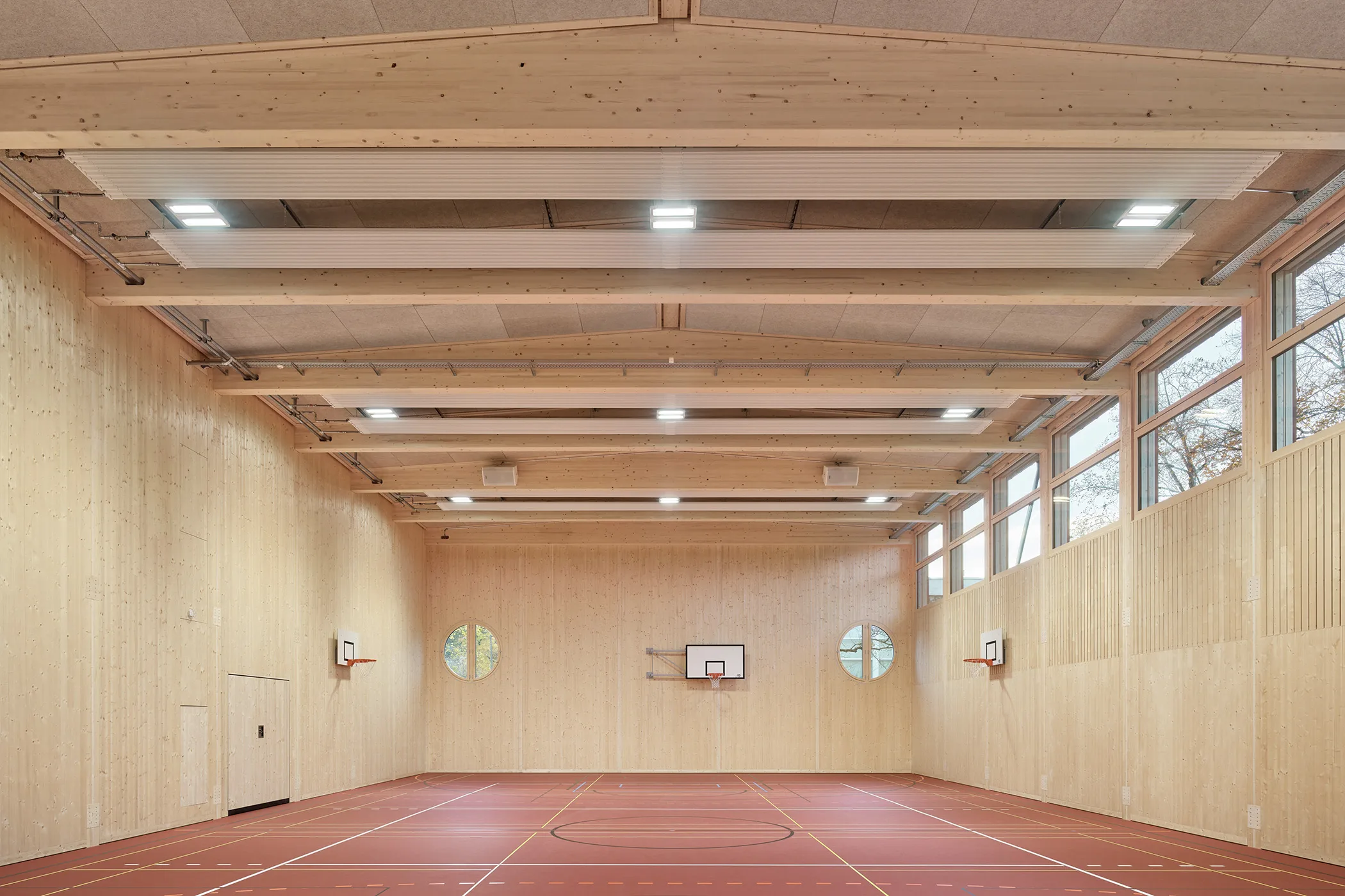 Im Kanton Zürich besteht ein akutes Raumbedürfnis für den Sportunterricht an Berufs- und Mittelschulen. Die Hallen dienen als regulärer Unterrichtsort während der Provisoriumsphase bis zum Bezug der definitiven Standorte. Realisiert von einem Holzbau-Generalunternehmer, erfüllen sie alle betrieblichen und gesetzlichen Anforderungen.