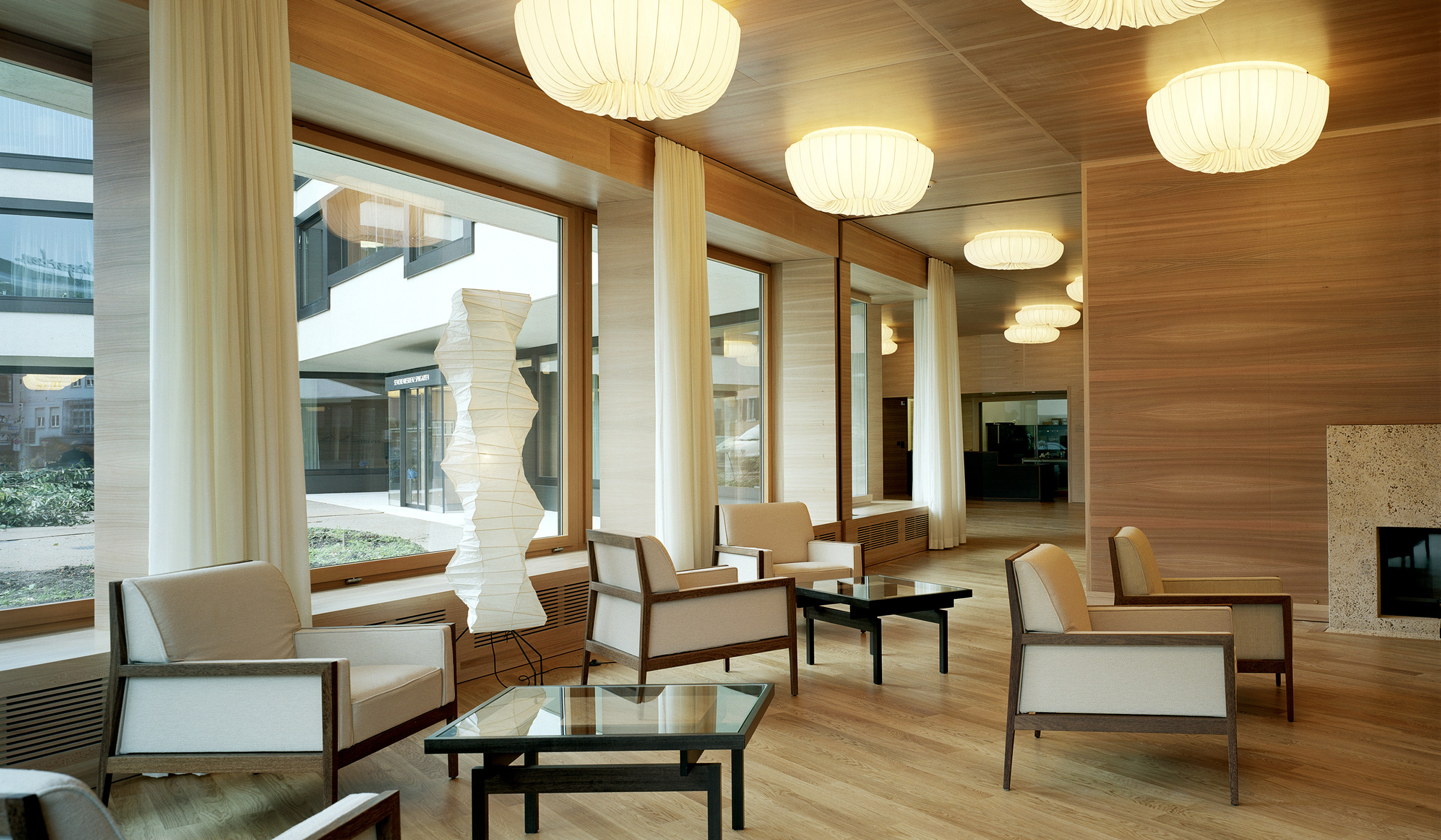 Die 68 Wohnungen der Residenz befinden sich im ersten bis vierten Obergeschoss. Im Attikageschoss ist die Pflegeabteilung mit Ess- und Aufenthaltsraum und einer grossen Terrasse, die einen traumhaften Blick über die Stadt und in die Berge freigibt, untergebracht.