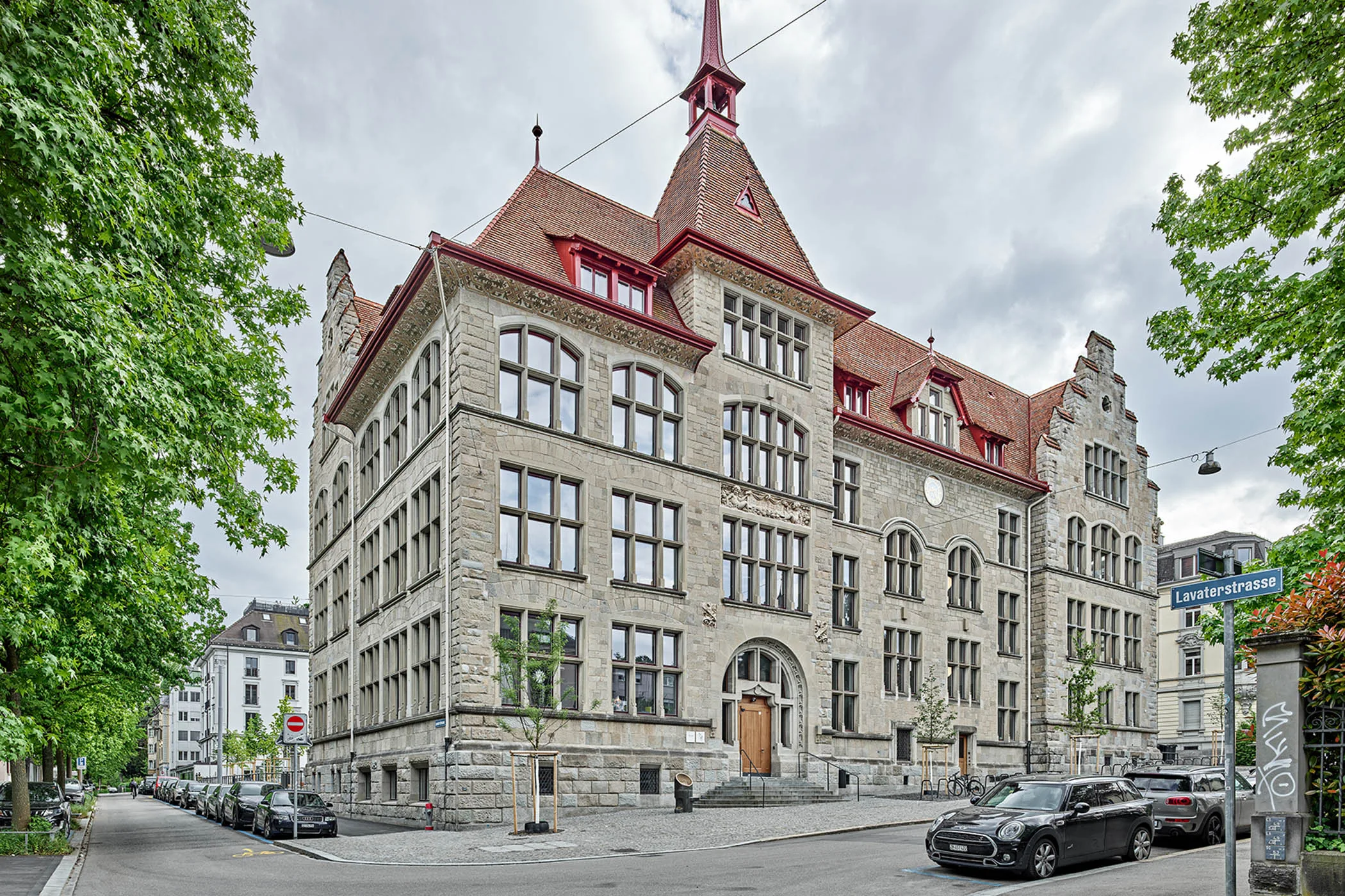 Die 1896 nach den Plänen von Gustav Gull erbaute Schulanlage Lavater liegt inmitten eines Wohnquartiers aus der Jahrhundertwende in Zürich-Enge. Um einen zeitgemässen Tagesschulbetrieb für 12 Klassen der Sekundarschule zu ermöglichen, wurde die historische Schulanlage Lavater umfassend instandgesetzt.