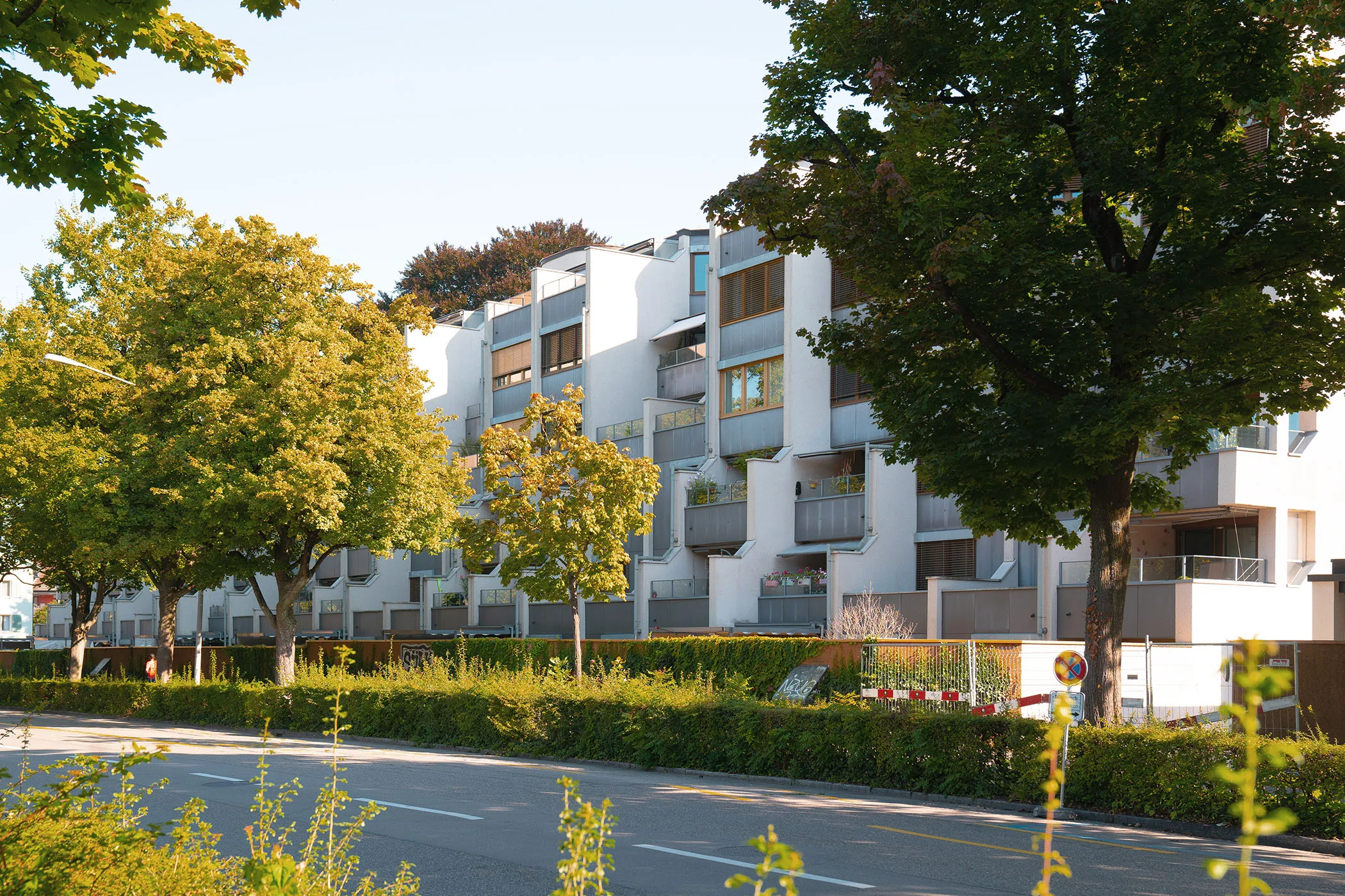 1979 reihten und stapelten Kuhn und Stahel auf dem Grundstück zwischen der Gutstrasse und dem Friedhof Sihlfeld 110 Wohnungen dicht zu zwei Zeilen. Die Bebauung gleicht einem Gebirgszug, in dem sich die Wohnungen zwischen den Schottenwänden nach oben zurückstaffeln. So entstehenden unterschiedliche Wohnungsgrössen und die Grundlage für eine durchmischte Bewohnerschaft. Seit 2013 ist die Siedlung im Inventar der Denkmal- und Gartendenkmalpflege.