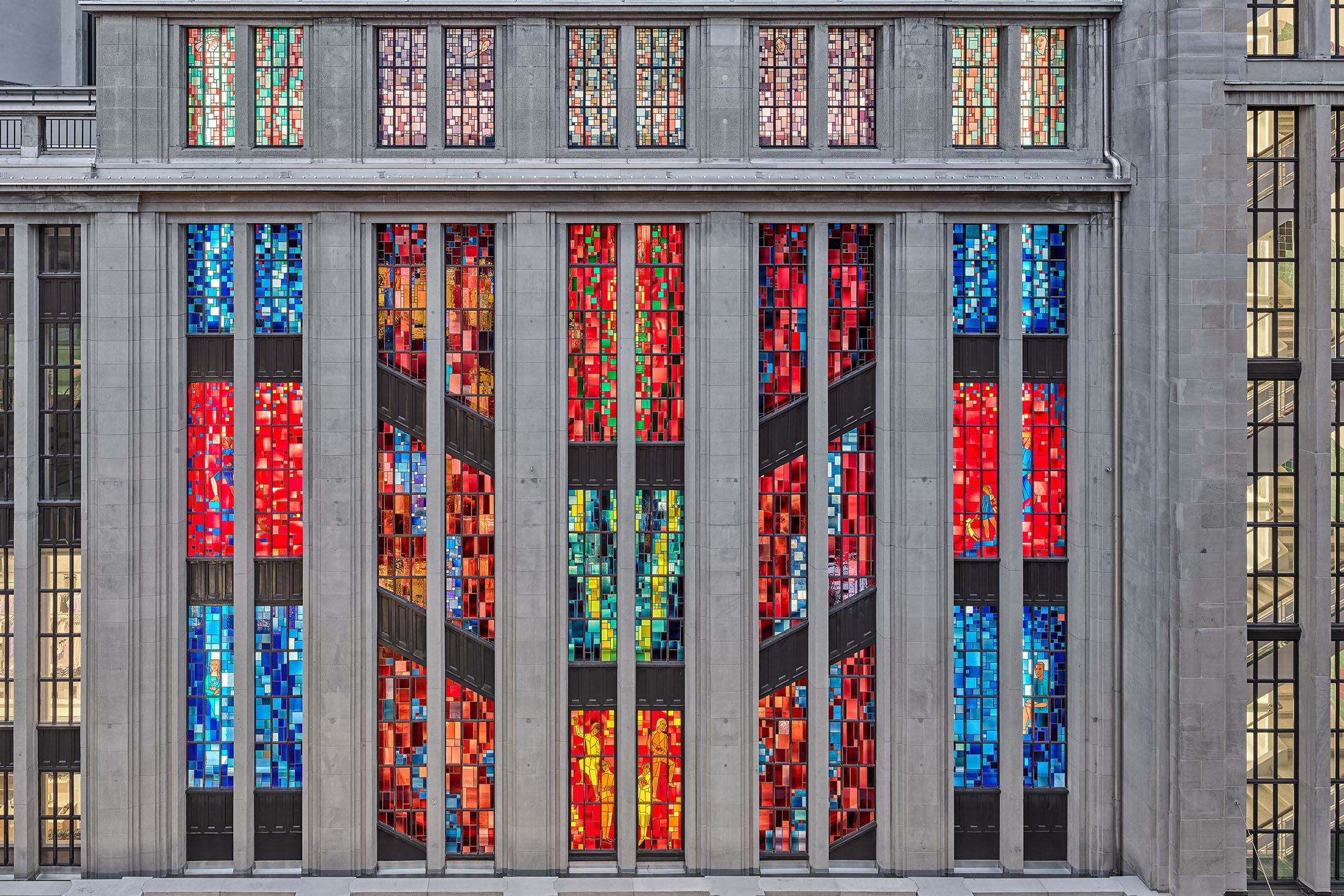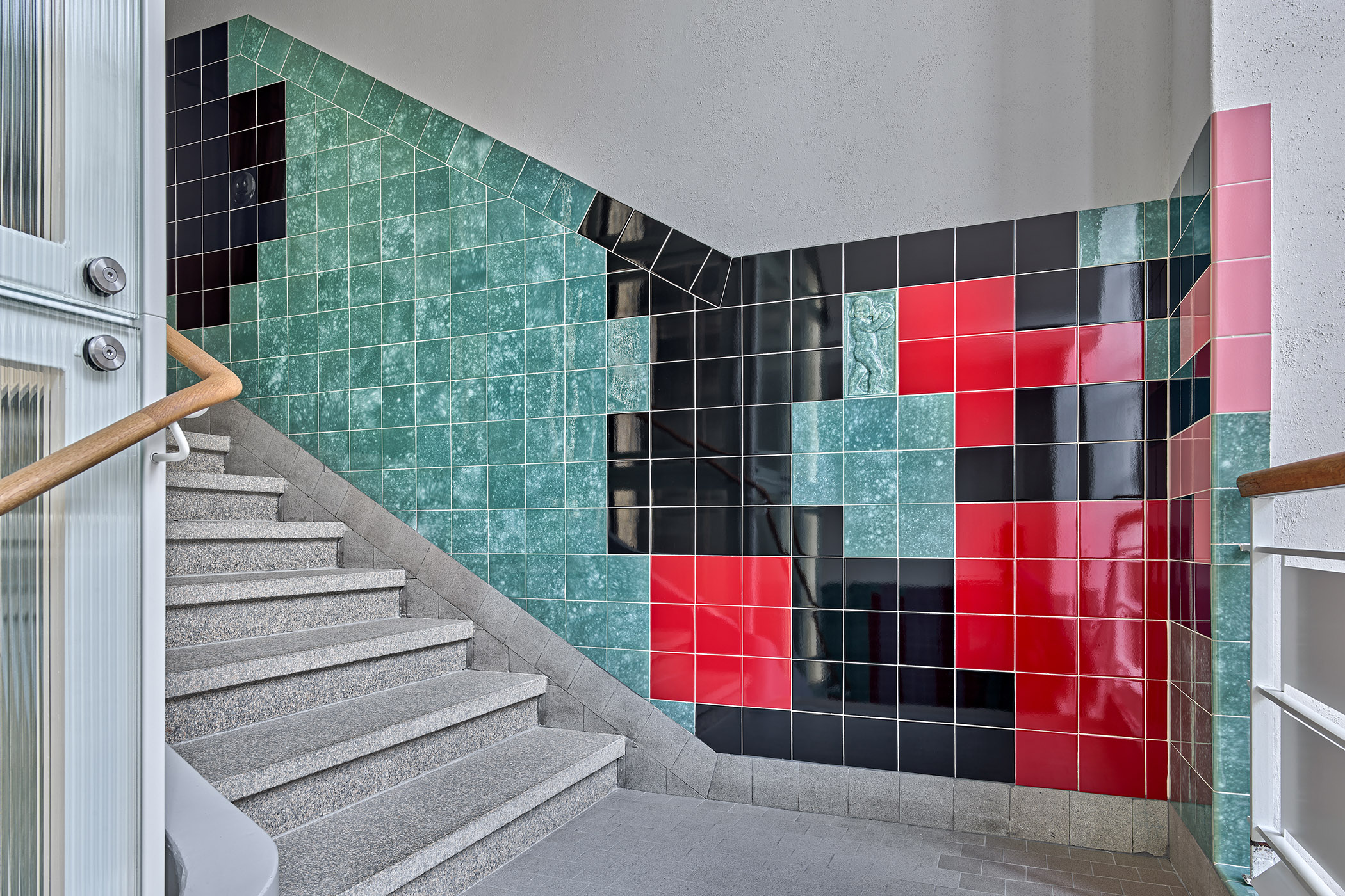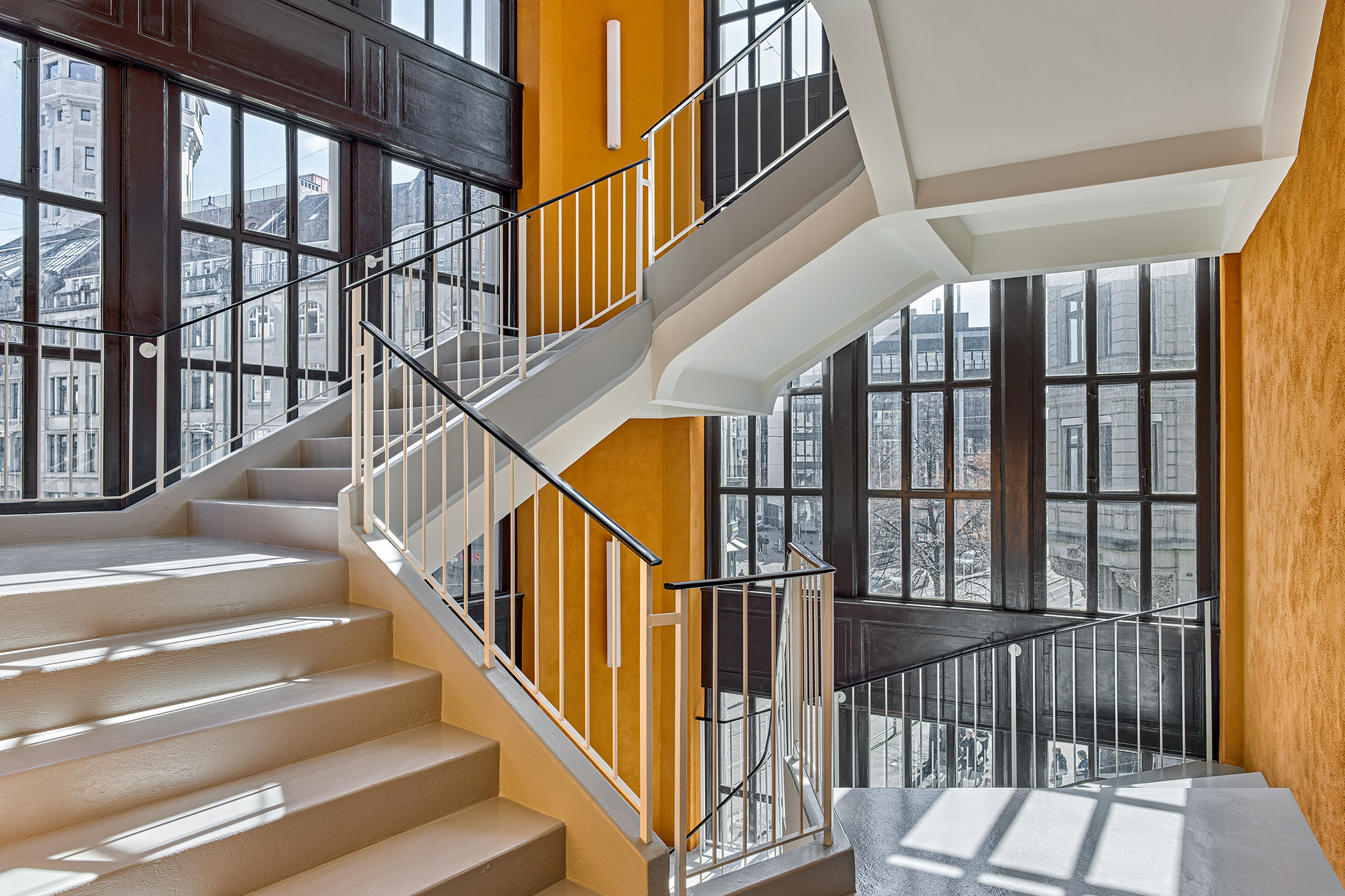 Besondere Elemente wie die bunten Bleiglasfenster von Otto Morach wurden restauriert, die historischen Wandfliesen in den Treppenhäusern durch Kacheln von Shirana Shahbazi ergänzt und die Lichthöfe wieder freigelegt. Heute befinden sich vom 1. Untergeschoss bis zum 1. Obergeschoss Ladengeschäfte und ein Café, darüber moderne Büroflächen.
