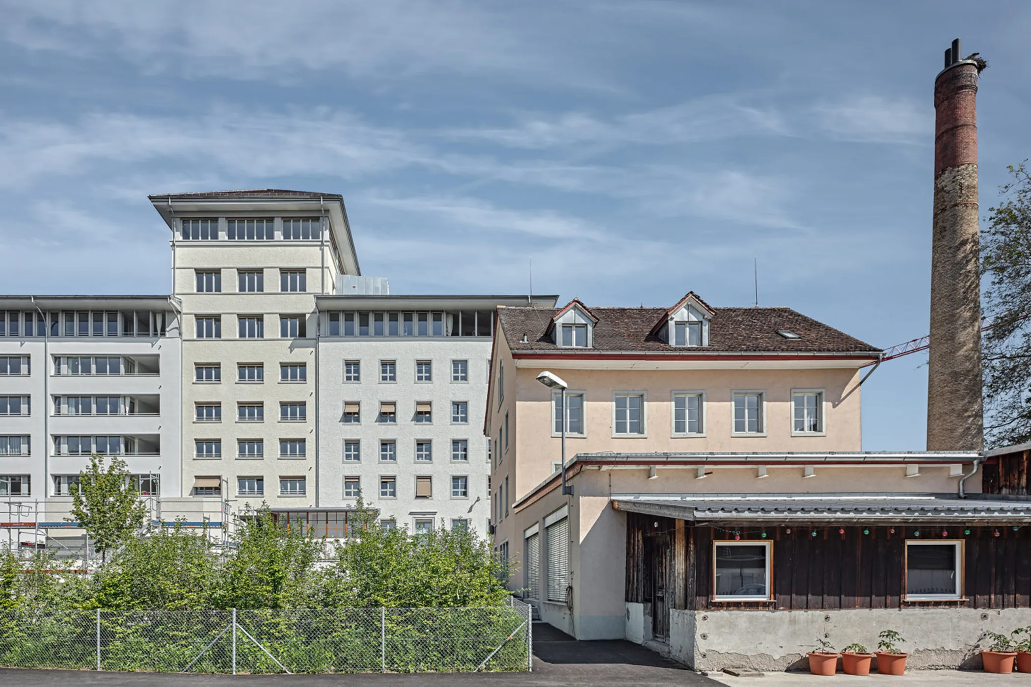Durch den Umbau und die Erweiterung des geschichtsträchtigen Spinnereigebäudes sind 35 Mietwohnungen entstanden. Während der Turmbau zum Turbinenplatz sowie der Ostteil zum Shedhallenplatz ihren ursprünglichen Charakter bewahren, wurde der langgezogene Westteil mit Verkaufsflächen im Erdgeschoss würdig erneuert.