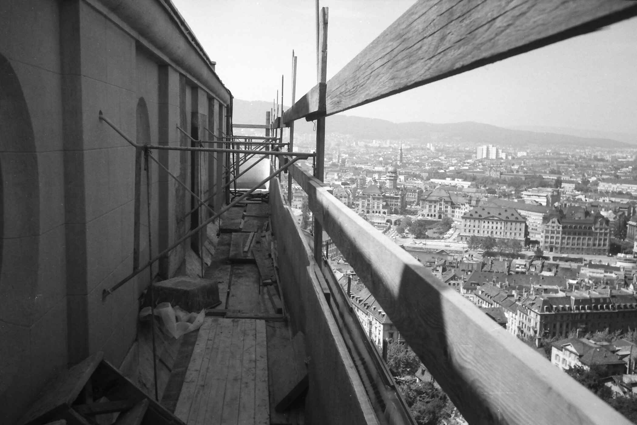 Der Universitätsturm, der zu seiner Zeit so singulär aus dem Zürcher Häusermeer wie aus einer Reihe von Universitätsbauten herausragte, muss als Beitrag zur damaligen Hochhausdiskussion verstanden werden. Zwar bildeten Türme auch damals schon akzentuierende Elemente von Universitäten, wie der Wettbewerb für ein Kollegiengebäude in Freiburg i. Br. von 1902 zeigt, an dem sich auch Curjel & Moser beteiligt hatten. Die Vorschläge enthielten da zum Beispiel einen schlanken Turm im Stil der deutschen Renaissance oder – so bei Curjel & Mosers Beitrag – eine übers Eck gestellte Zweiturmfassade. Der Universitätsturm hat beim stadtseitigen Eingang an der Künstlergasse eine Höhe von 65 m. Schon 1914 war er mit einem elektrischen Personenaufzug» über alle Geschosse erschlossen. Der quadratische Grundriss des Turms deckt die Schnittstelle ab, an der die beiden gegeneinander versetzten Volumen des Biologischen Instituts und des Kollegiengebäudes ineinander geschoben sind. Karl Moser verstand den Turm als Element, das die beiden Gebäudekomplexe zusammenhält. In ihm fänden sie «ihre Krönung und Vollendung», einen «harmonischen Ausklang» ihrer unregelmässigen Verteilung.