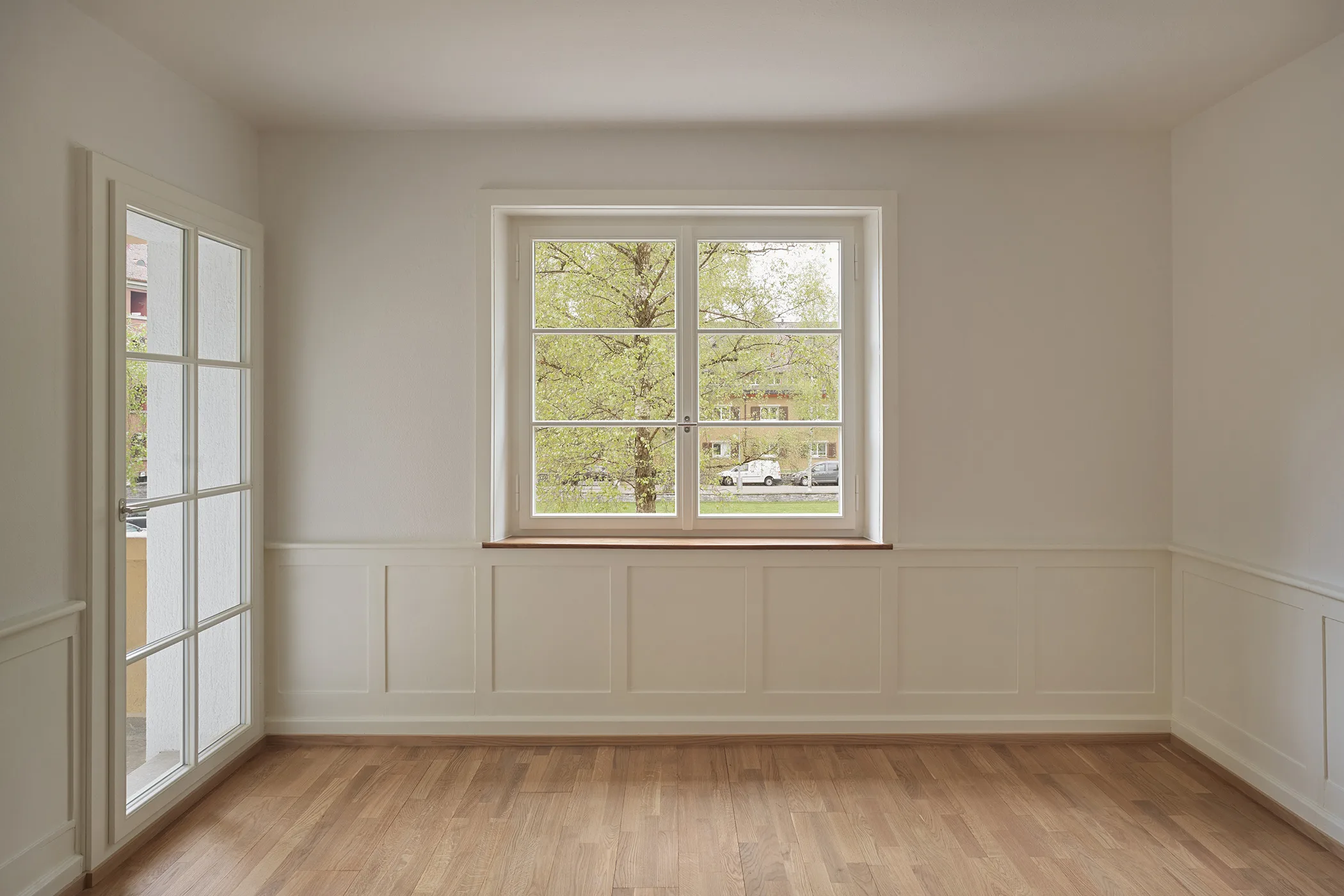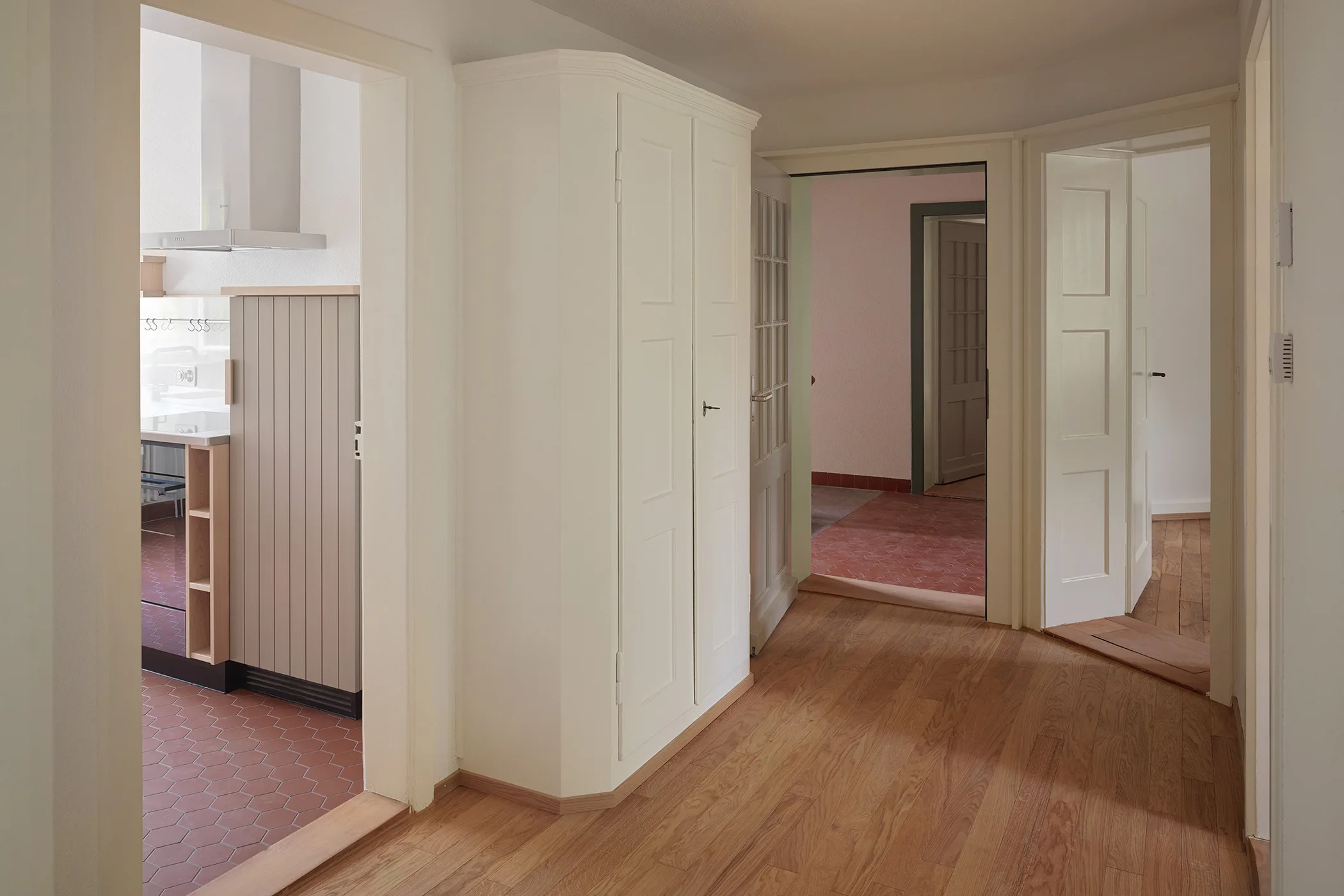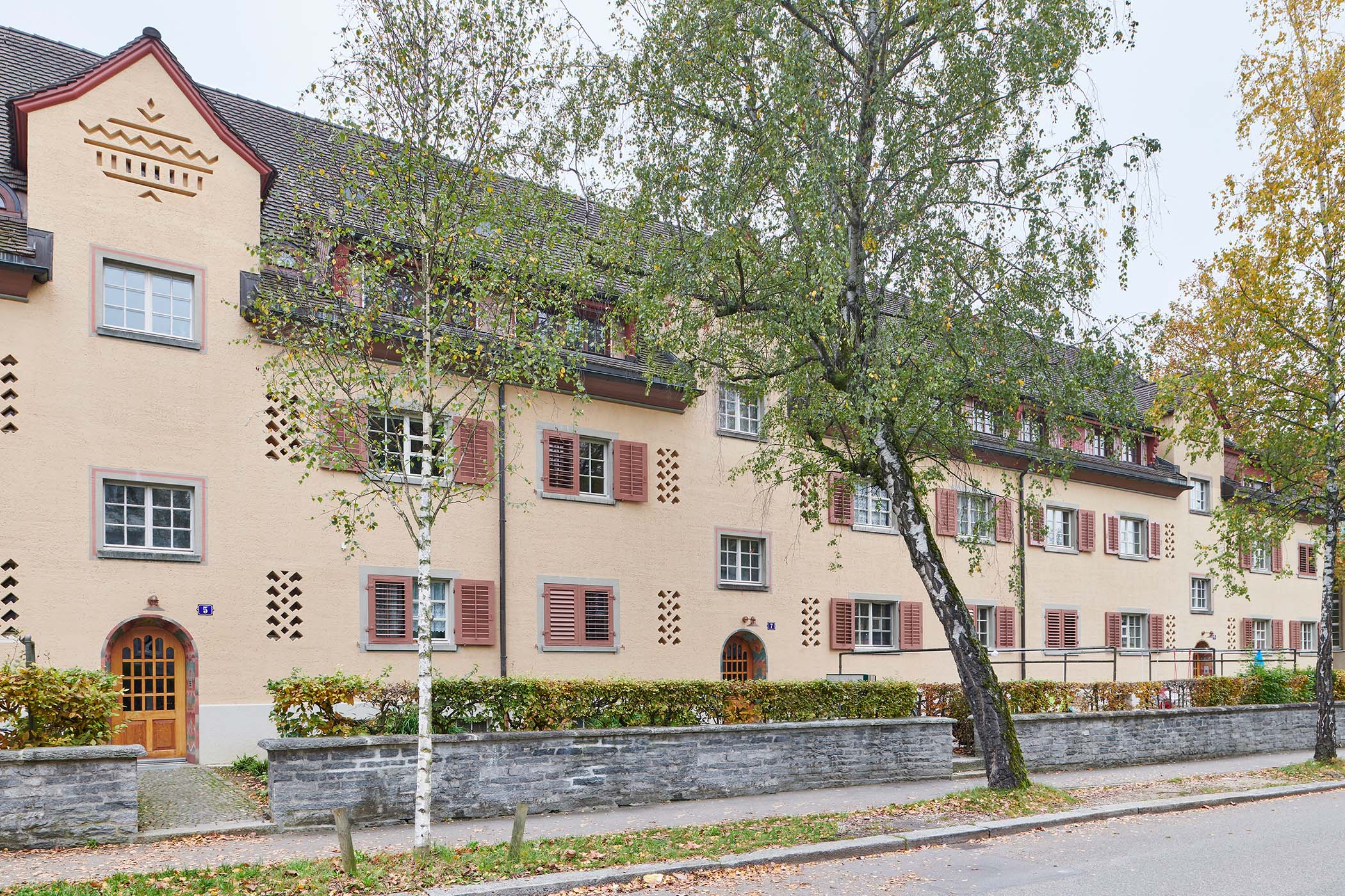 Die Siedlung „Im Birkenhof“ wurde in den Jahren 1925-26 nach Plänen der Architekten Froelich, Kündig, Oetiker erbaut. Mit unterschiedlichen Baukörpern und 16 Treppenhäusern weist die Siedlung einen hohen Variationsreichtum auf. Die Tatsache, dass sich die 101 Einheiten nicht nur in ihrer typologischen Disposition, sondern auch in ihrem Sanierungszustand unterscheiden, stellte eine Herausforderung für die Planung und Ausführung dar. Das denkmalgeschützte Gebäudeensemble, bei dem nicht nur die Fassaden, sondern auch grosse Teile des Gebäudeinneren als schützenswert gelten, wurde instandgesetzt und teilweise umgebaut. Die geplanten Massnahmen verfolgten stets das Ziel, den sehr preiswerten Wohnraum für das gleiche Mietersegment zu erhalten. Unter Einhaltung der ECO- Richtlinien wurden konsequent Materialien mit geringem CO2-Ausstoss und geringem Verbrauch an grauer Energie eingesetzt.