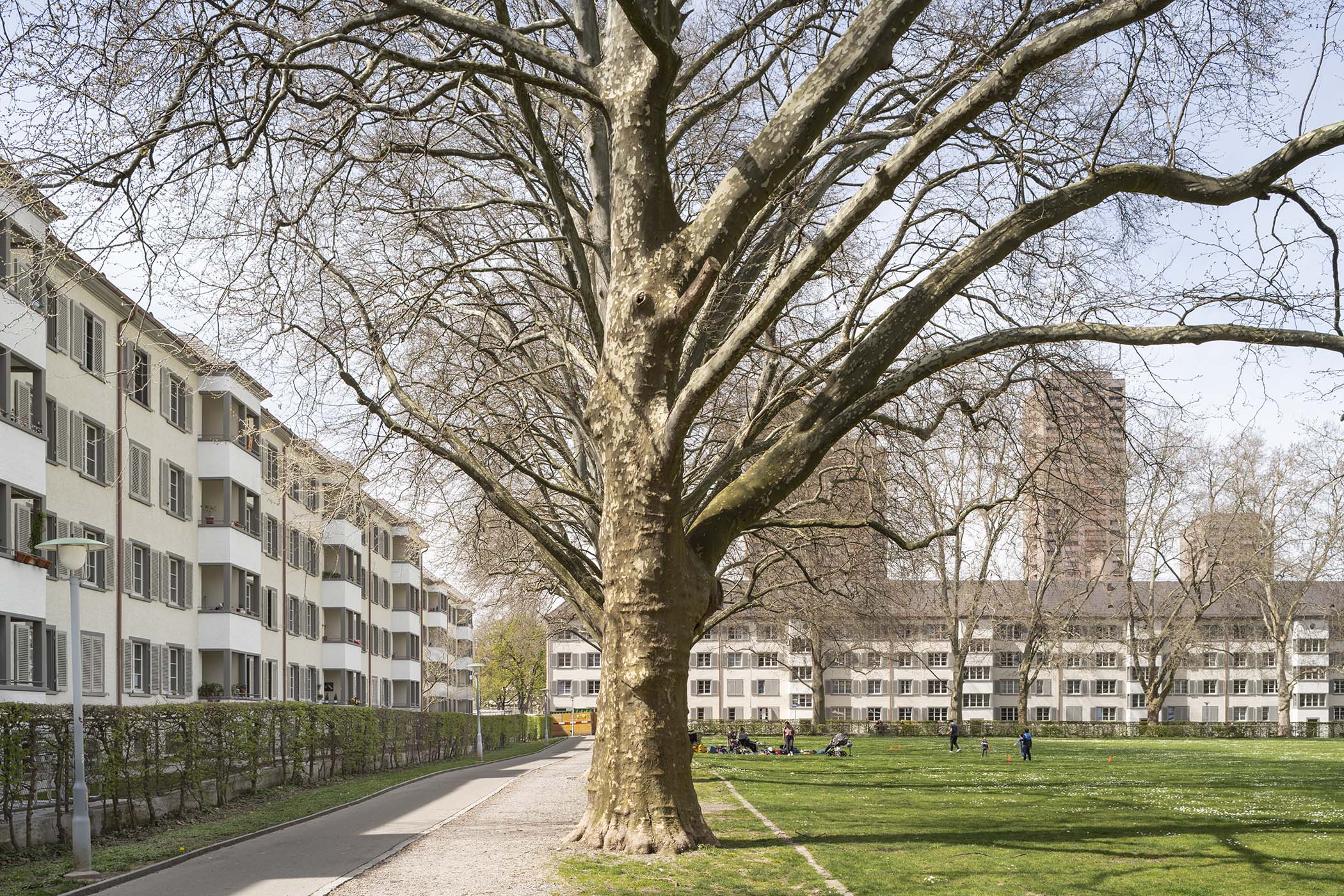 Gezielte Grundrissanpassungen, die Wiederherstellung der Fassade, eine Neuinterpretation der direkten Umgebungsgestaltung sowie subtil integrierte Energiemassnahmen werten die gesamte Anlage auf und sichern die originale Gebäudesubstanz der 224 Wohnungen und Nebengebäude.
