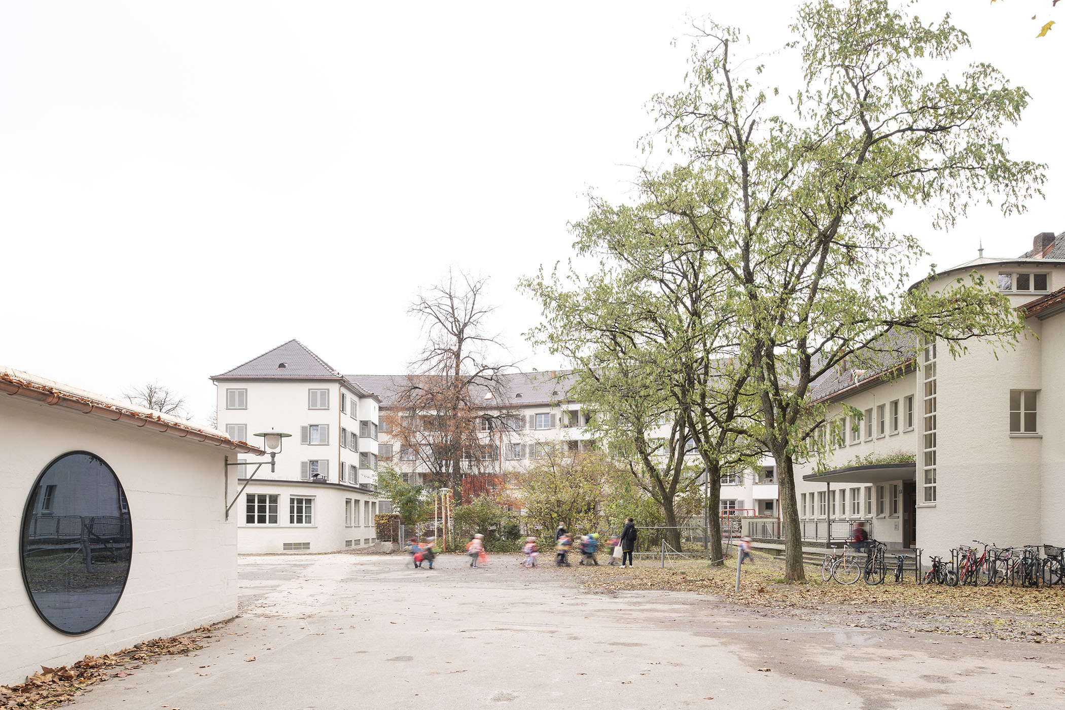 Der „Bullingerhof“ wurde 1931 durch die Architekten Karl Kündig und Heinrich Oetiker errichtet und fünf Jahre später durch einen Kindergarten mit Tagesstätte sowie ein Polizei- und Quartierbüro ergänzt. Die grösste Blockrand-Überbauung der Stadt Zürich entstand nach der Idee der Volksparkbewegung und stellt heute einen wertvollen innerstädtischen Grünraum dar. Mit der Gesamtinstandsetzung wurde der Fokus auf elementare Massnahmen gelegt, um den Bestand zu schonen und die Eingriffstiefe zu minimieren.