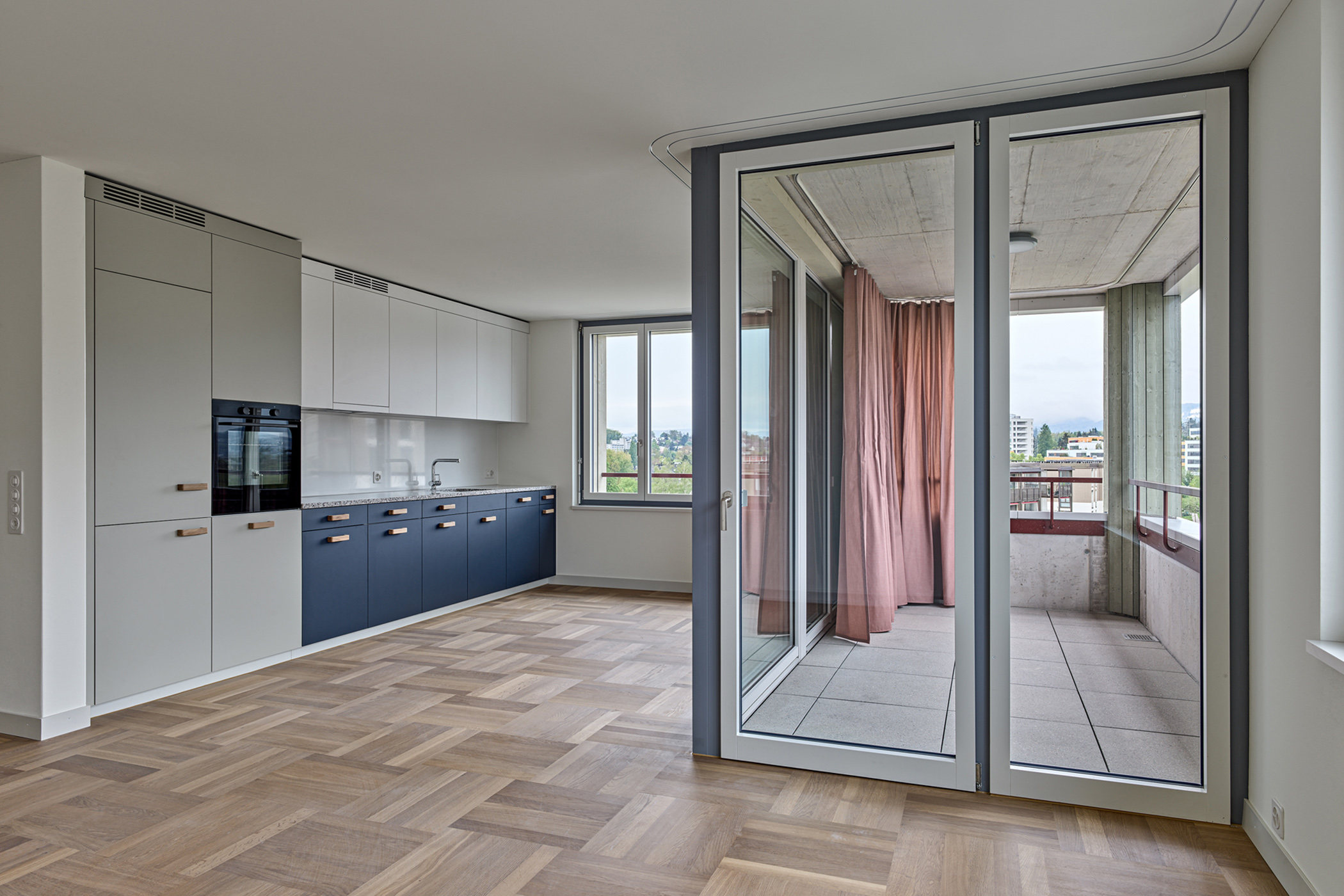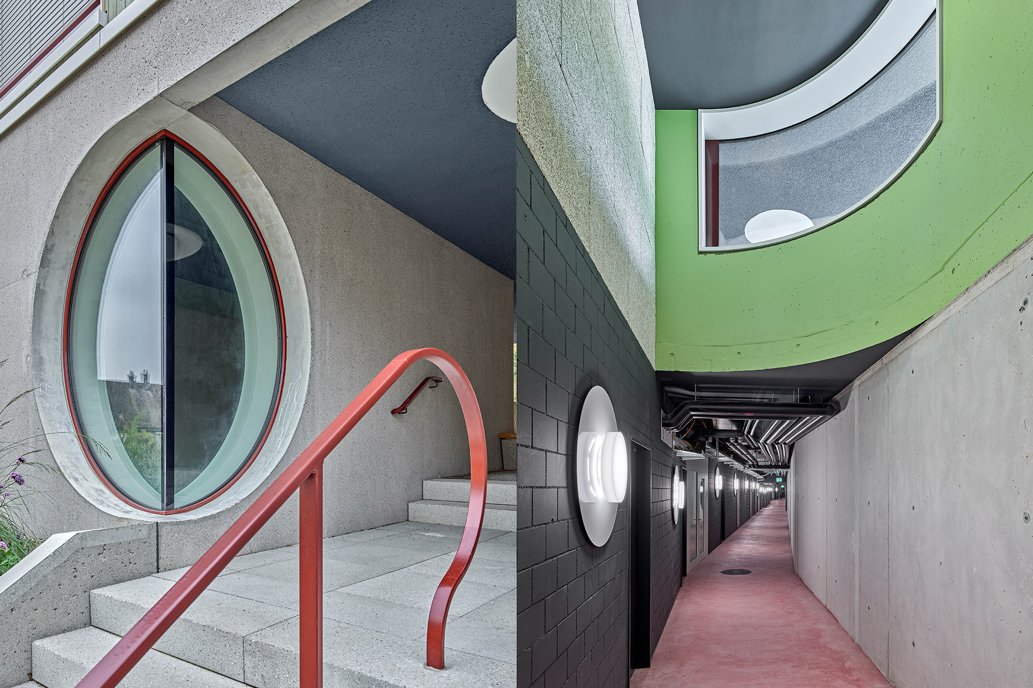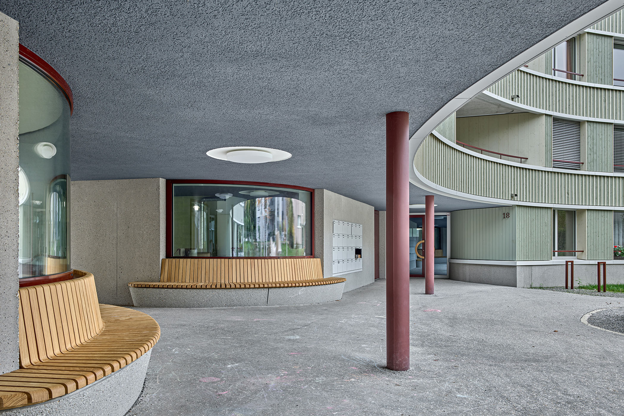 Die Gemeinnützige Baugenossenschaft Heimelig plante am Entlisberg in Wollishofen den Ersatz einer 1930er-Jahre-Siedlung. Das langgestreckte Grundstück bietet schöne Aussichten über die Stadt. Trotz erhöhter Dichte liegt der Fokus auf hochwertigen Aussenräumen. Die Setzung der Bauten schafft vielfältige stadträumliche Qualitäten und erzeugt eine neue, ortsbezogene Identität: Eine markante, unterbrochene Zeile fasst die Verena-strasse, ein Kopfbau schliesst zur Lettenholzstrasse ab. Ein kleineres Haus markiert an der Butzenstrasse den IV-gerechten Zugang. Hangseitig erzeugen Einbuchtungen kleinteilige Fassadenbilder und binden so die Neubauten in die Körnung des Quartiers ein. Die kraftvoll expressive Architektur und ein klares Erschliessungskonzept prägen den gemeinschaftlichen Charakter der Siedlung. Gedeckte Eingänge verbinden Strasse und Garten, Sitzbänke bei den Waschsalons fördern den sozialen Austausch. Die natürlich belichtete „rue intérieure“ im UG verbindet die Häuser als Raum der Begegnung.