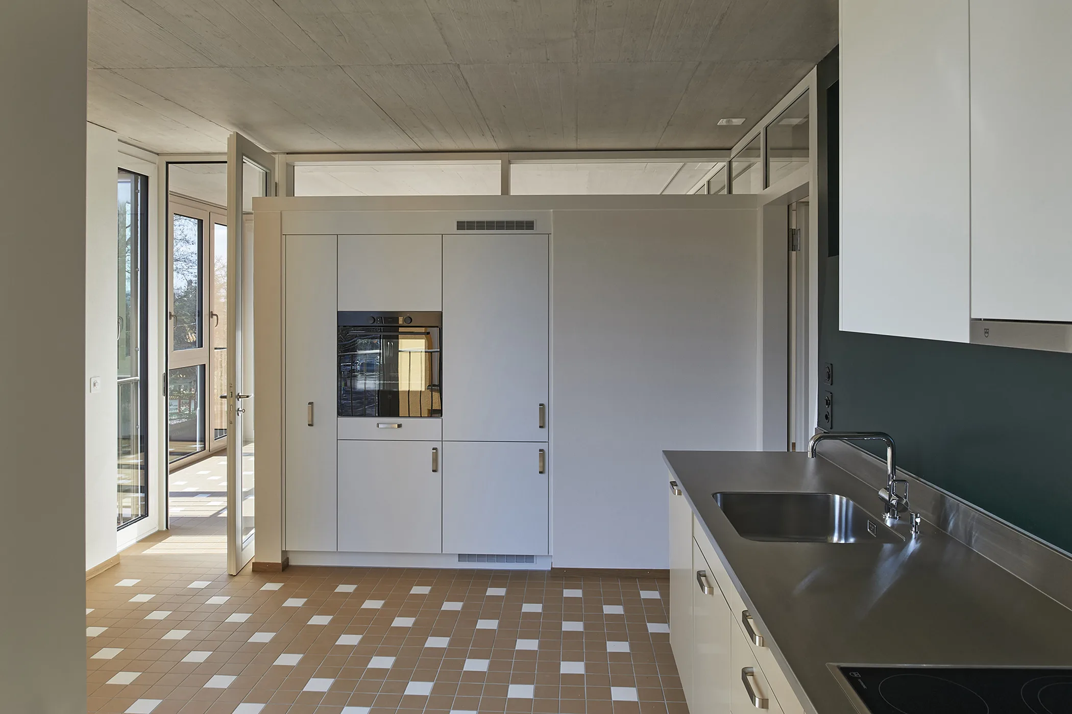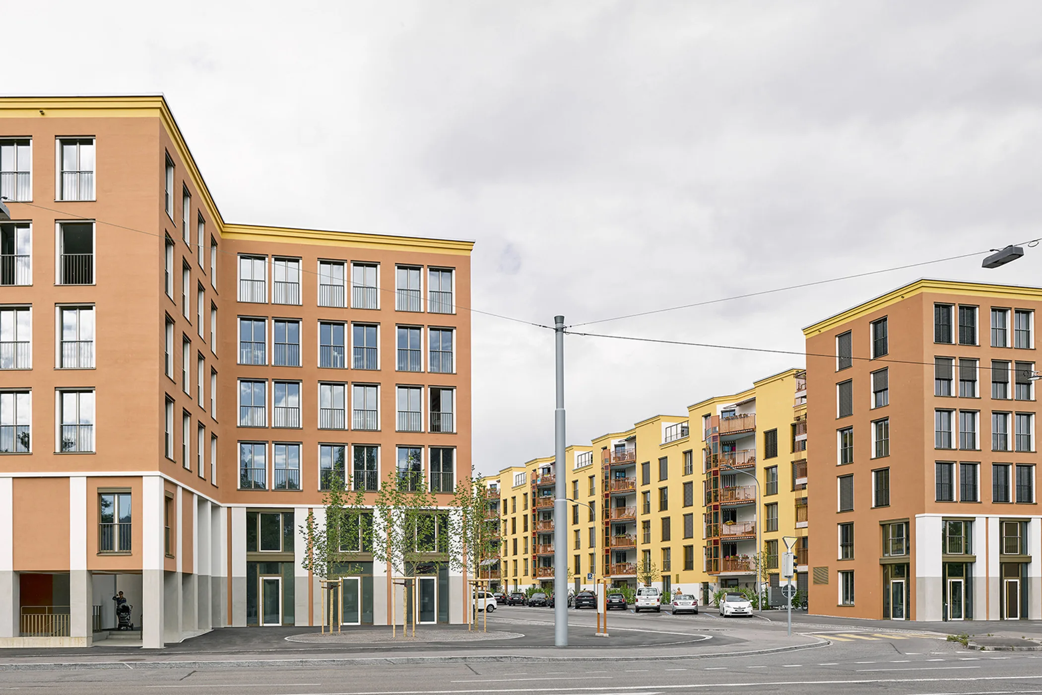 Die Wohnsiedlung Hornbach im Zürcher Seefeld bietet 125 Wohnungen von 1,5 bis 5,5 Zimmern sowie zwei Cluster-Wohngemeinschaften für 10 bzw. 12 Personen. Ergänzt wird das Angebot durch Ateliers, Büros, eine Kita, Werkhof- und Gewerbeflächen. Zwei Baukörper, ein Zeilenbau und ein offener Blockrand, rahmen einen begrünten Innenhof mit Spielbereichen, Pflanzgärten und einer Velogarage mit begehbarem Dach. Unterschiedliche Gebäudehöhen und plastische Fassaden verleihen dem Ensemble Lebendigkeit. Nachhaltigkeit steht im Zentrum: Die Siedlung erfüllt den Minergie-ECO-Standard, wird CO₂-frei mit Seewasser und Photovoltaik versorgt und fördert Biodiversität durch den freigelegten Hornbach. Dank Kostenmiete und subventionierten Wohnungen ermöglicht das Projekt vielfältigen Haushalten ein zeitgemäßes, erschwingliches Leben im Seefeld.