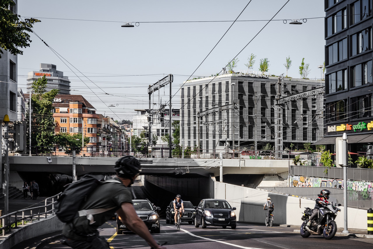 Das Zollhaus ist autofrei; dank vielen Veloparkplätzen und guter öV-Anbindung wird eine nachhaltige Mobilität gewährleistet.
