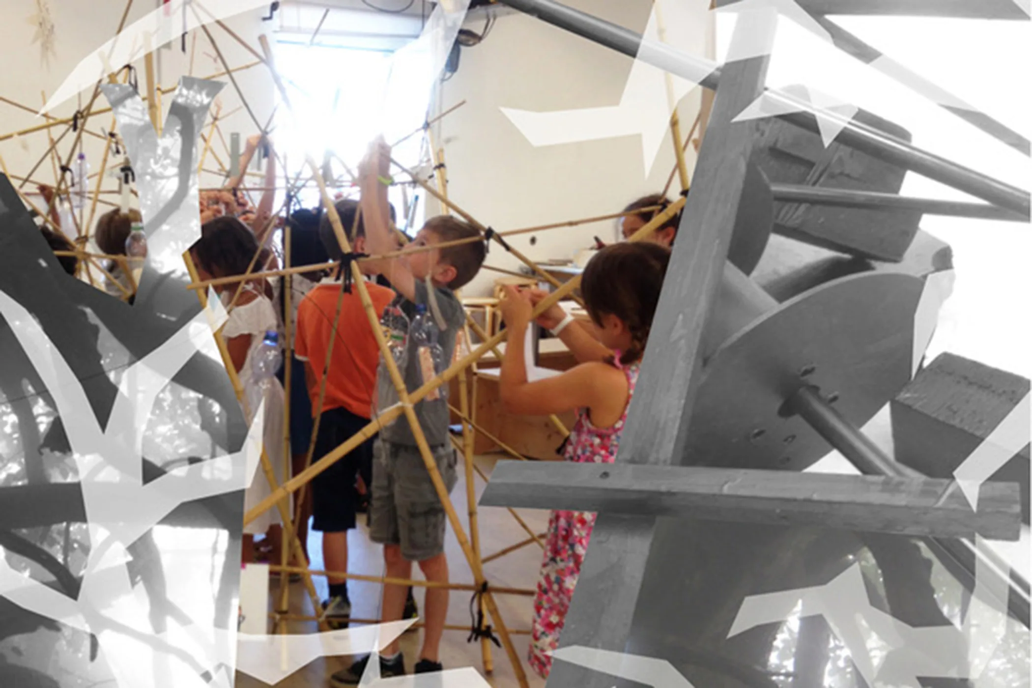 Gemeinsam mit Marielou Hürlimann, augebildete Architektin und Kulturvermittlerin, findet während den Führungen im Basislager ein Architektur-Workshop für Kinder statt. Dabei wird ein dreidimensionales Bambusgerüst aufgebaut, in welches die Kinder ihre eigene Wohnwelt einbauen können. Sei es ein fliegendes Zimmer, oder eine Rutsche direkt auf das Fussballfeld. Mit verschiedensten Materialien bauen alle drei Gruppen nacheinander diesen Kosmos auf.