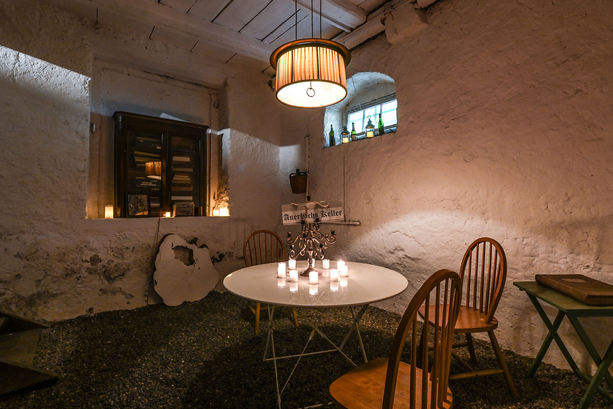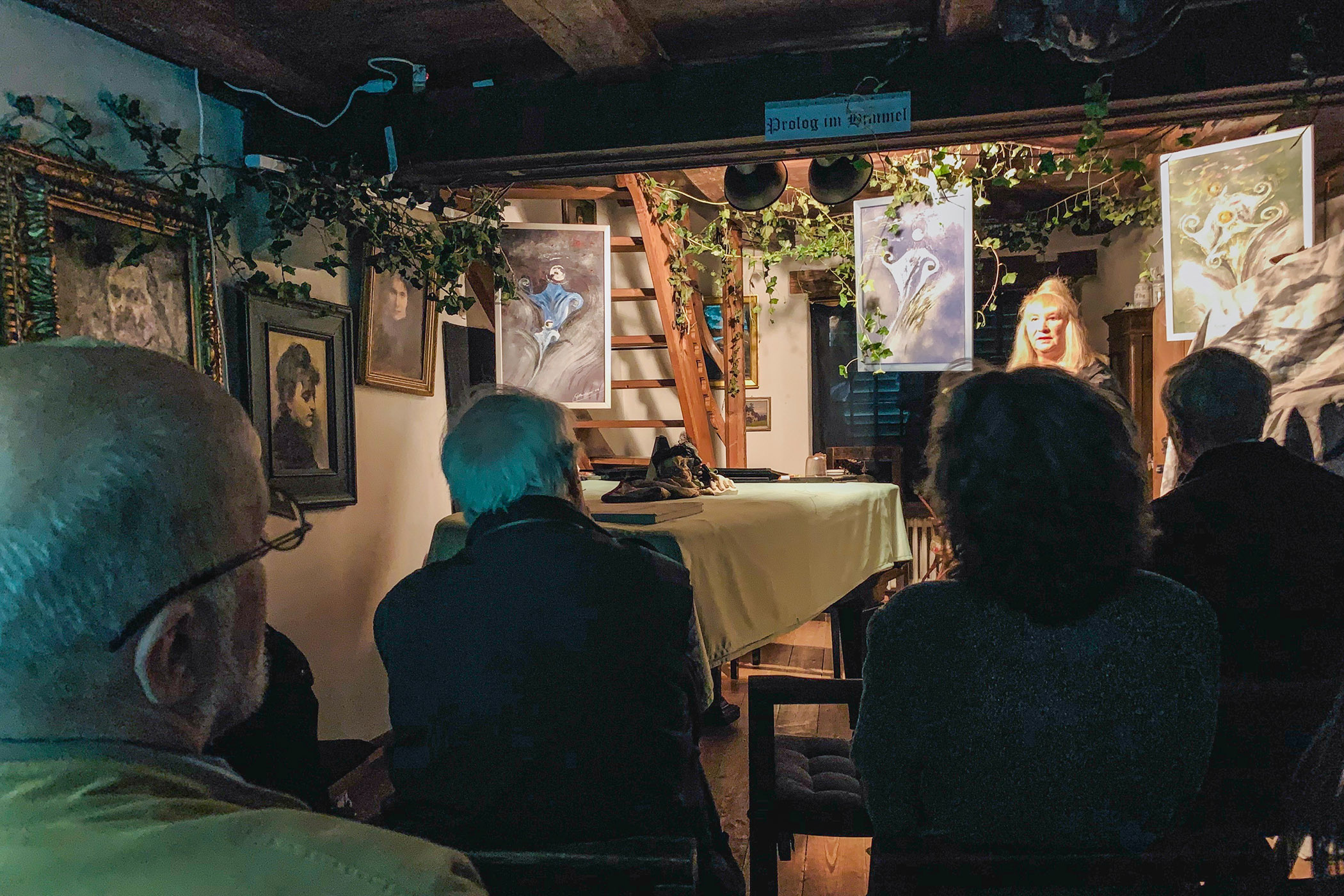 Die Zürcher Künstlerin Clara Luisa Demar erzählt die Geschichte von Doktor Faust und fügt ihr bedeutsame Stellen aus Goethes Dichtung bei. Als Erlebniskulisse dienen die Räume des Hauses; das Turmzimmer, das Fausts Studierzimmer sein könnte, die Keller, die magische Küche und der Garten. So erleben die Gäste «Faust» und lernen zugleich die besondere, im Laufe der Jahrhunderte gewachsene Architektur des Hauses kennen.