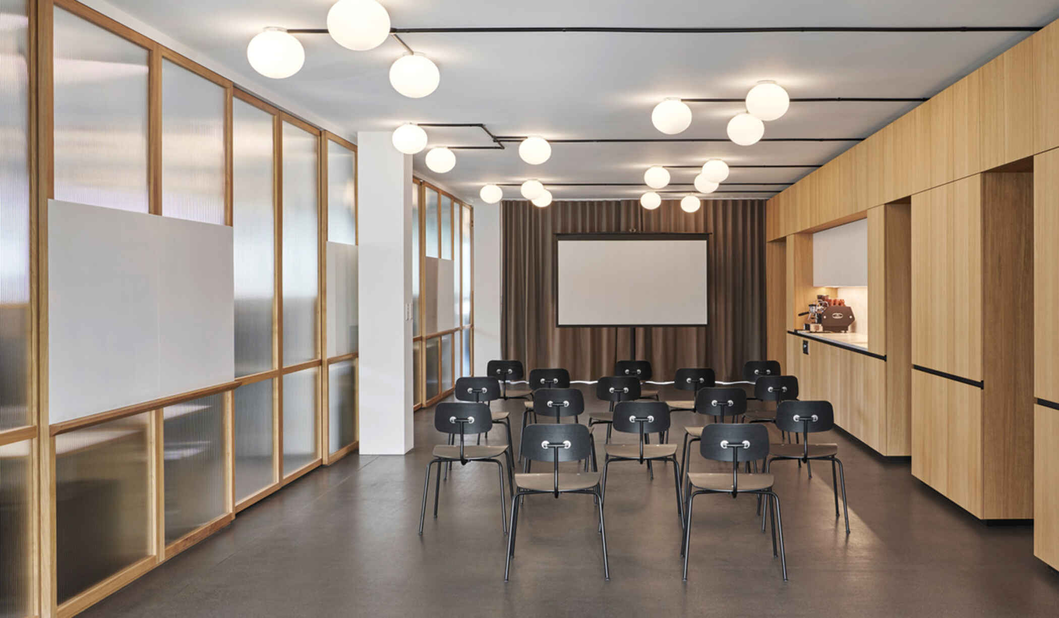 Nach dem Umbau der Büroräumlichkeiten an der Hardturmstrasse 76 in ein Architekturstudio entstand ein offener Grundriss mit zwei Zonen. Davon dient eine als Kommunikationszone und schafft eine einladende und grosszügige Atmosphäre für Events und Workshops.