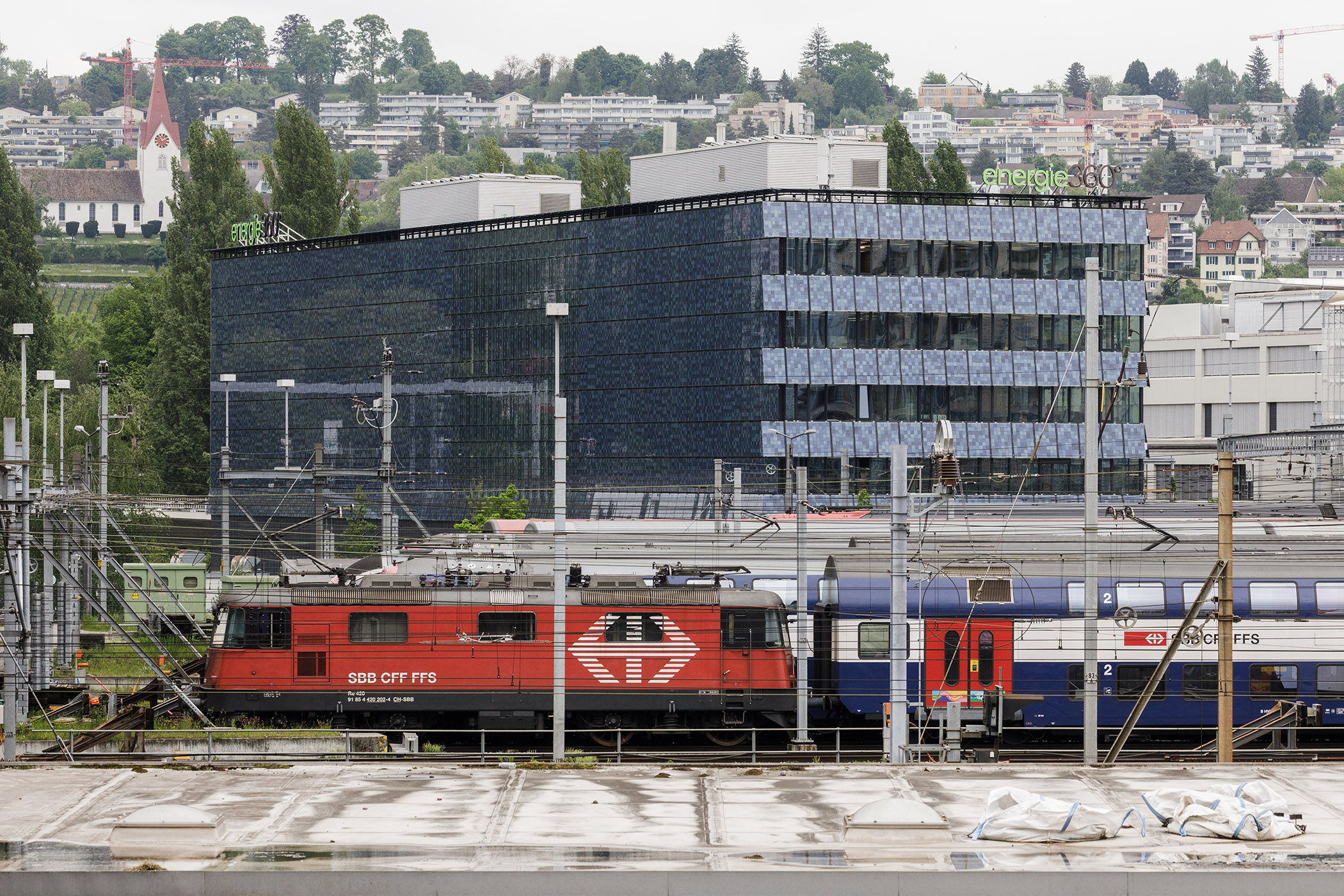 Der neue Hauptsitz von Energie 360° an der Europabrücke in Zürich demonstriert die nachhaltige Weiterentwicklung bestehender Bausubstanz. Statt einer Erweiterung wurde der 2003 errichtete Bau sanft transformiert und zu einer flexiblen Arbeitswelt mit 330 Desksharing-Arbeitsplätzen für rund 400 Mitarbeitende umgestaltet. Der identitätsstiftende Baukörper erhält durch die neue PV-Fassade eine prägnante architektonische Aufwertung: modular gegliederte Elemente entlang der Fensterbänder optimieren den solaren Ertrag und erzeugen ein schillerndes Erscheinungsbild. Innenräume mit Holz, Naturfarben und Pflanzinseln schaffen eine offene, warme Arbeitsatmosphäre. Der Freiraum wird klimaadaptiv entwickelt, mit Stadtgarten, biodiverser Vegetation und entsiegelten Flächen. Das Projekt verbindet Ressourcenschonung, Energieeffizienz und langfristige Anpassungsfähigkeit und zeigt die Potenziale einer zukunftsorientierten Transformation im Bestand.