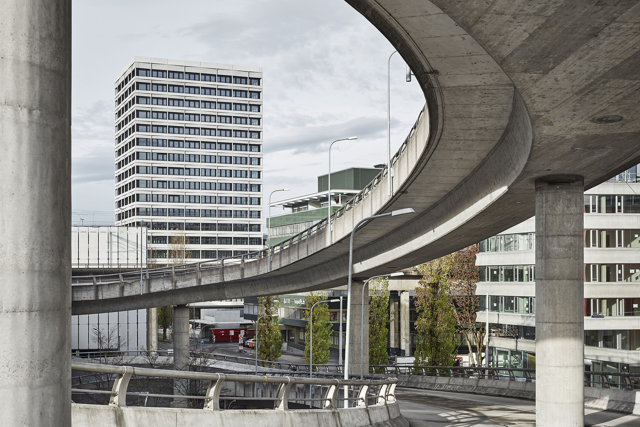 Das Neubauprojekt ersetzt zwei maximal ausgenutzte Büro- und Gewerbehäuser aus den 80er Jahren. Um Platz für benutzbare Aussenräume mit städtebaulichem Mehrwert zu schaffen wurde das Volumen in einem dreiteiligen Ensemble konzentriert. Neben den Büro- und Gewerbeflächen in den Obergeschossen beleben im Erdgeschoss öffentlichkeitswirksame Nutzungen wie Gastronomie, Konferenzräume und Verkauf den Aussenraum des Quartiers.