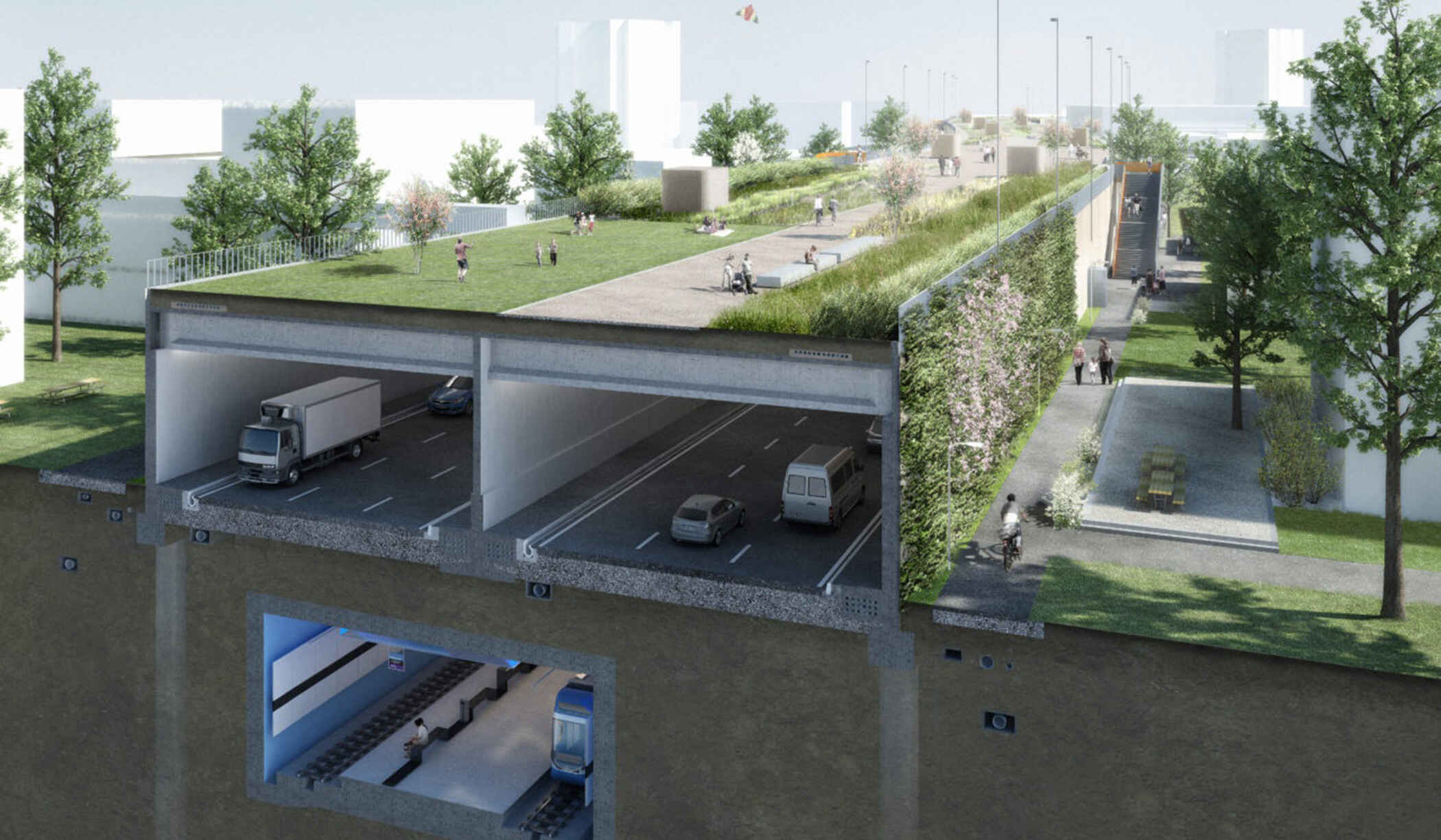 Doch das Betonhaus für den Verkehr mit seinem Park auf dem Dach und den begrünten Wänden wird eine massive Zäsur sein, für den einst fliessenden Parkraum ist es ein Hindernis wie jetzt die Autobahn. Die Hoffnung, dass Brücken und moderate öffentliche Nutzungen den Betonkoloss dereinst überwinden werden, ist intakt – ein Quartierplan und mehrere entschiedene Architekturwettbewerbe lassen optimistisch in die Zukunft blicken.